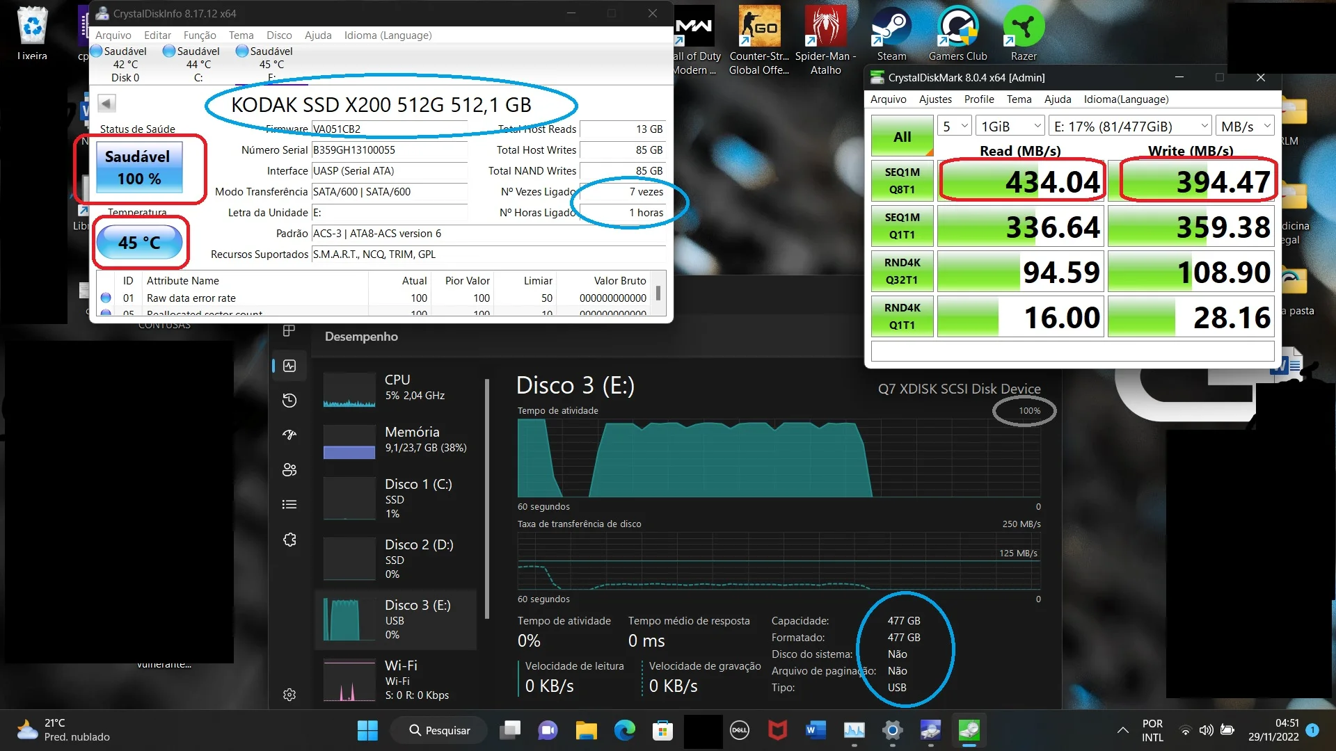 Мне нравится продукт, очень компактный и сдержанный. Прошли испытания с помощью кристаллического диска, и полученные показатели были близки к обещанным в спецификации продукта. Тест SSD был сделан на 100% и получил стоп чтения рядом с ожидаемым, но письмо немного ушло желать. Тем не менее, это не descredibiliza продукт, по-прежнему думаю, что это хорошая выгода.