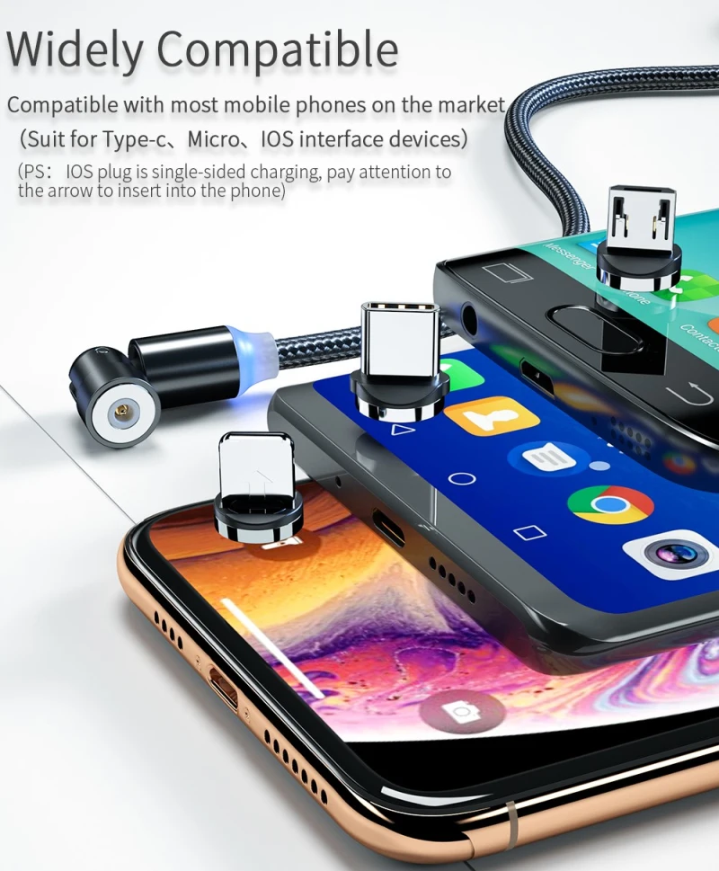 2.4A Магнитный зарядный кабель для передачи данных для iPhone Samsung Xiaomi 540 градусов вращение USB Тип C Магнитный зарядный Micro USB кабель