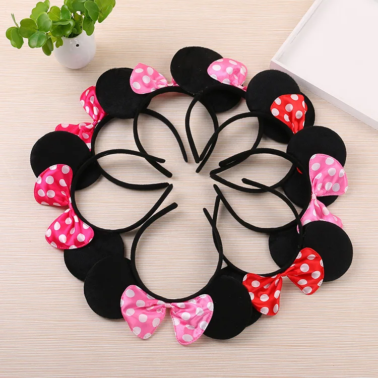 Микки Мышь вечерние повязка на голову, повязка на голову, платья розового цвета заколки для волос в форме бантиков или для девочек День Рождения вечерние детский благосклонность небольшие подарки