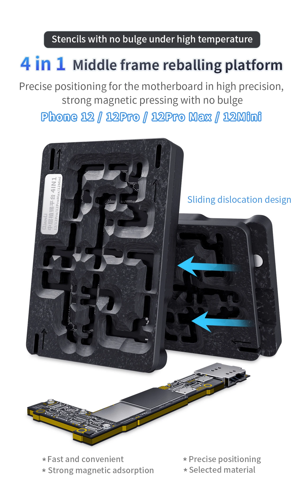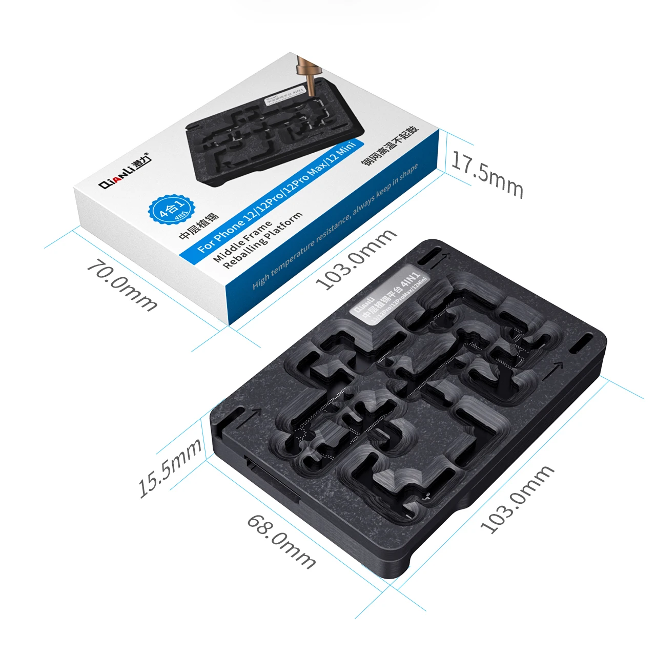 Трафарет для реболлинга Qianli 4 в 1 BGA для iPhone 12/12 Pro MAX/12 Mini, пайка материнской платы, средняя рамка, посадочная Оловянная платформа