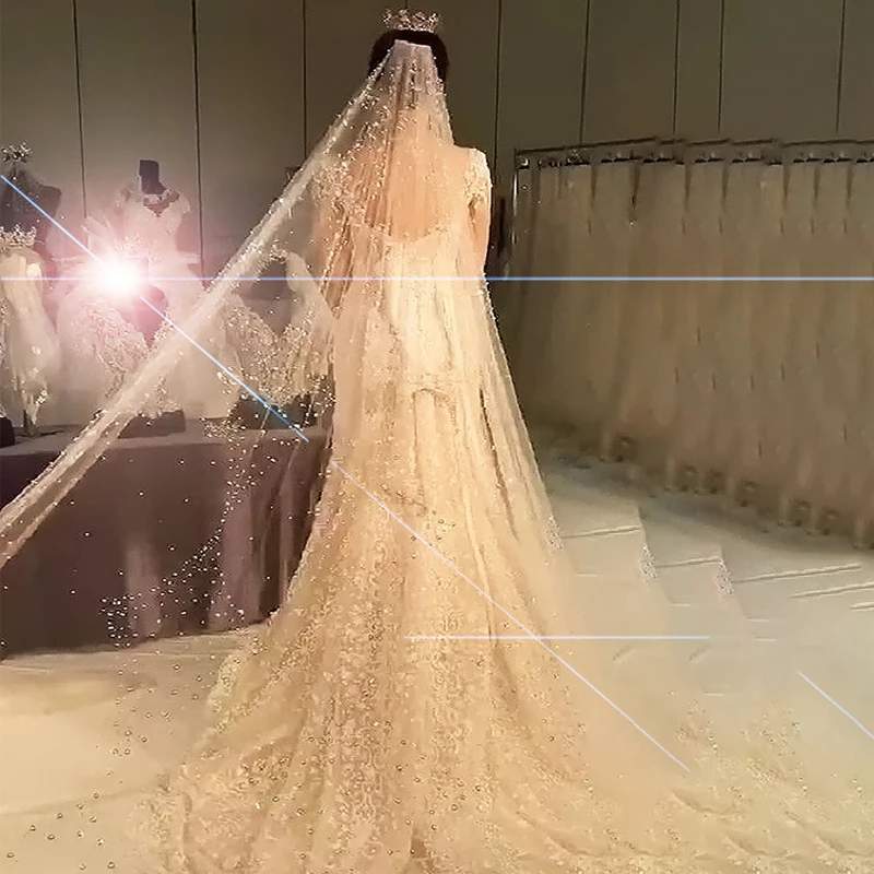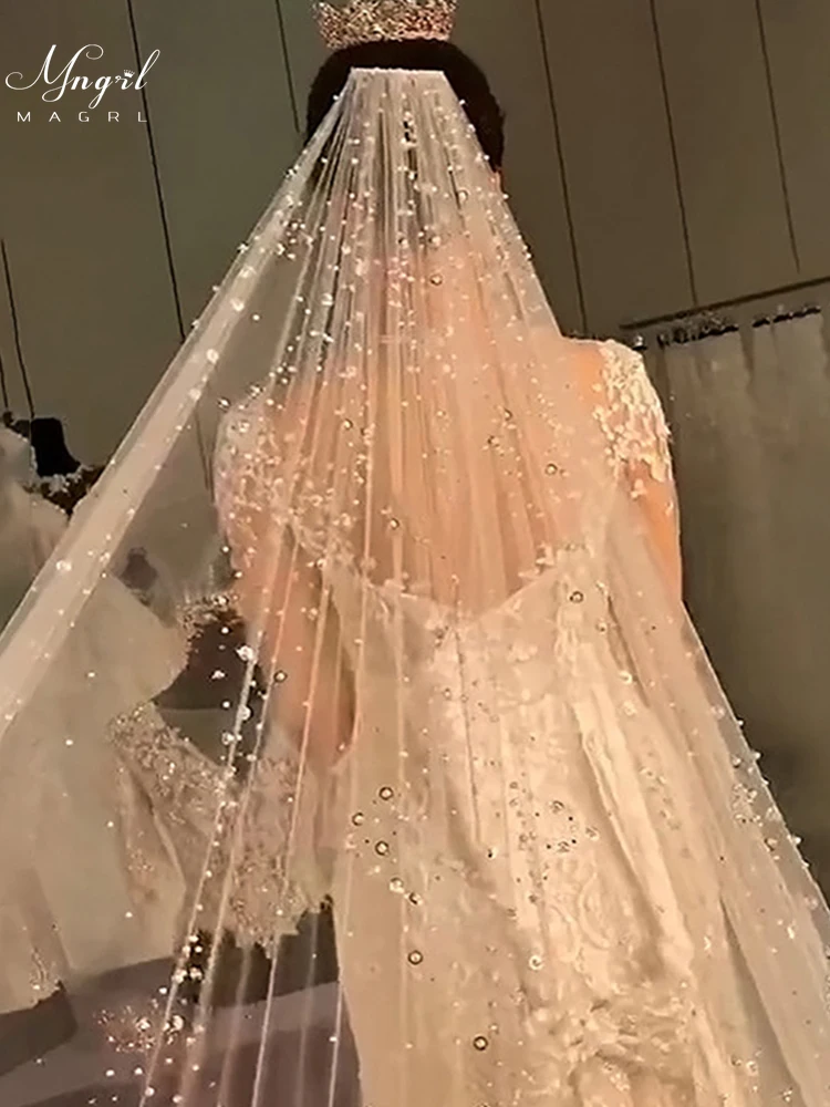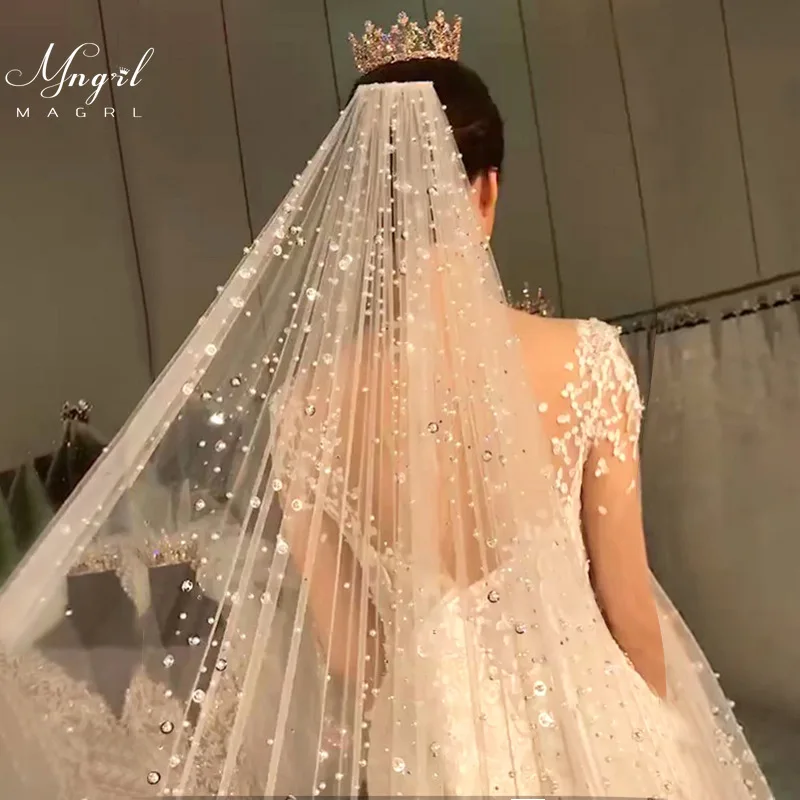 MNGRL Свадебные аксессуары Фата Роскошный Ретро головной убор длиной 3 м Однослойная фата с жемчугом Вуаль со стразами