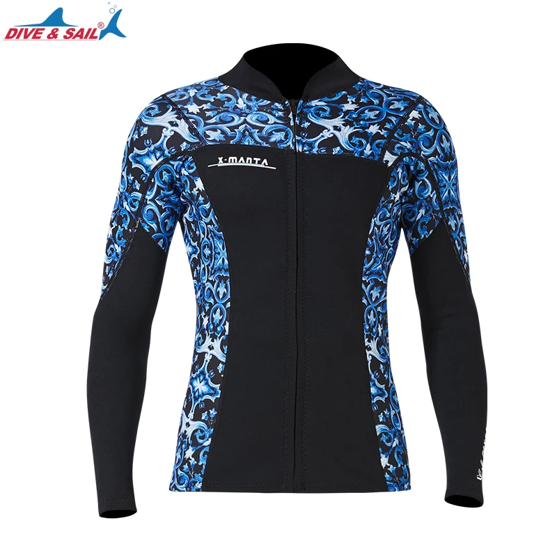 Гидрокостюм, топ, куртка, жилет, мужская, женская, 2 мм3 мм1,5 мм, Неопреновая, с длинным рукавом, на молнии спереди, спортивный, для дайвинга, серфинга, плавания