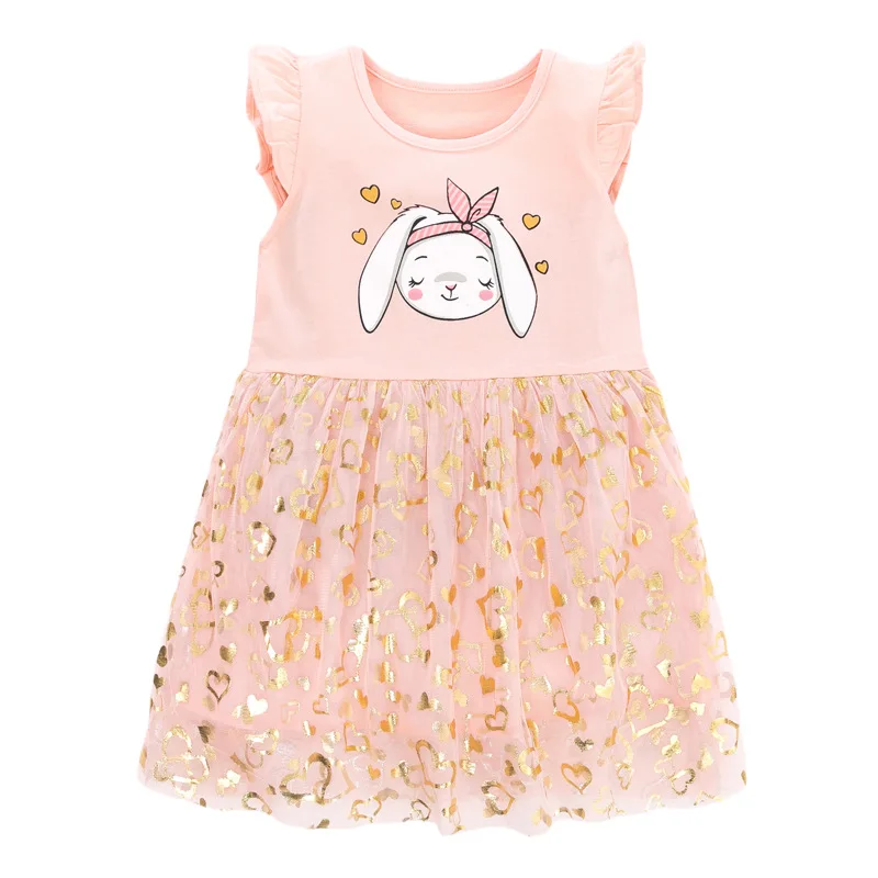 Детские платья; Новинка 2021 года; Летняя одежда для маленьких девочек; Брендовое платье для малышей; Повседневные хлопковые фатиновые платья с кроликом для детей; От 2 до 7 лет