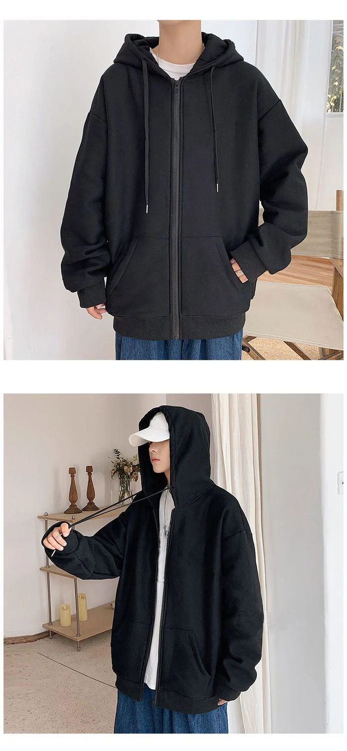 Мужская осенне-зимняя толстовка с капюшоном и молнией большого размера