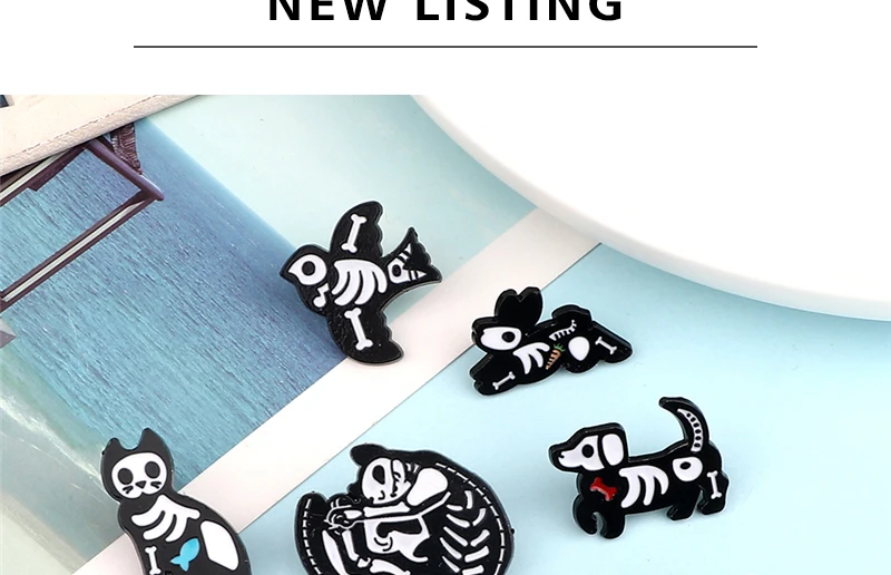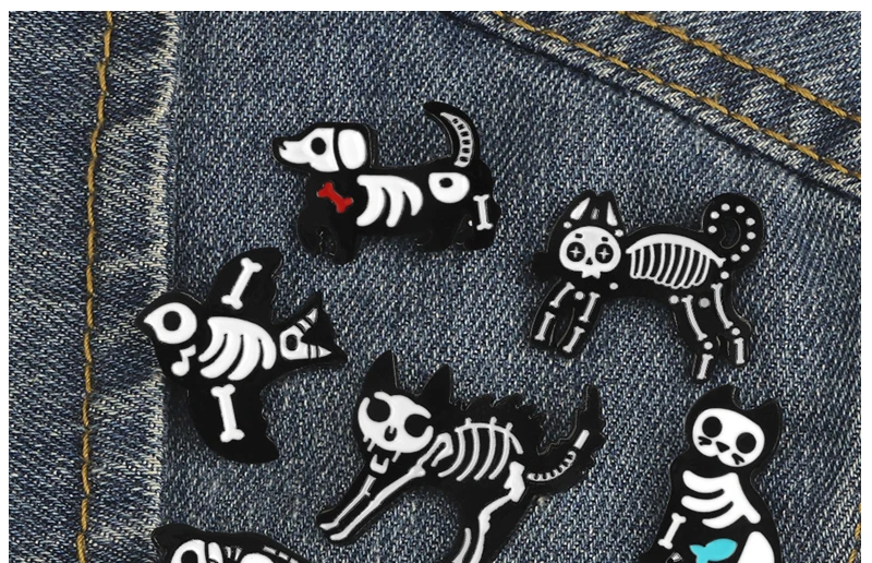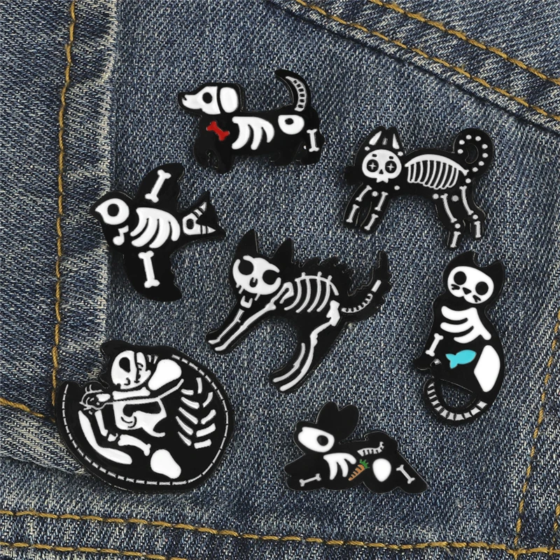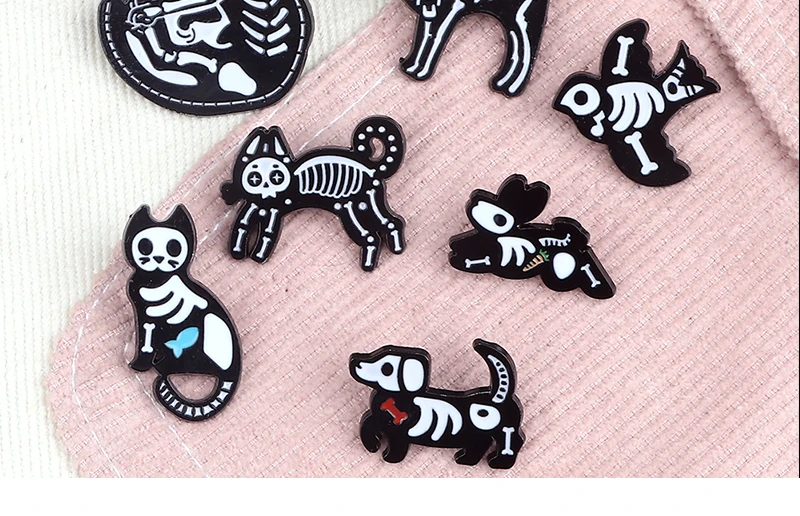 Брошь в виде черепа для мужчин, черно-белая эмалированная брошь в стиле скелет, темный панк, на заказ, классный значок для рюкзака, бижутерия
