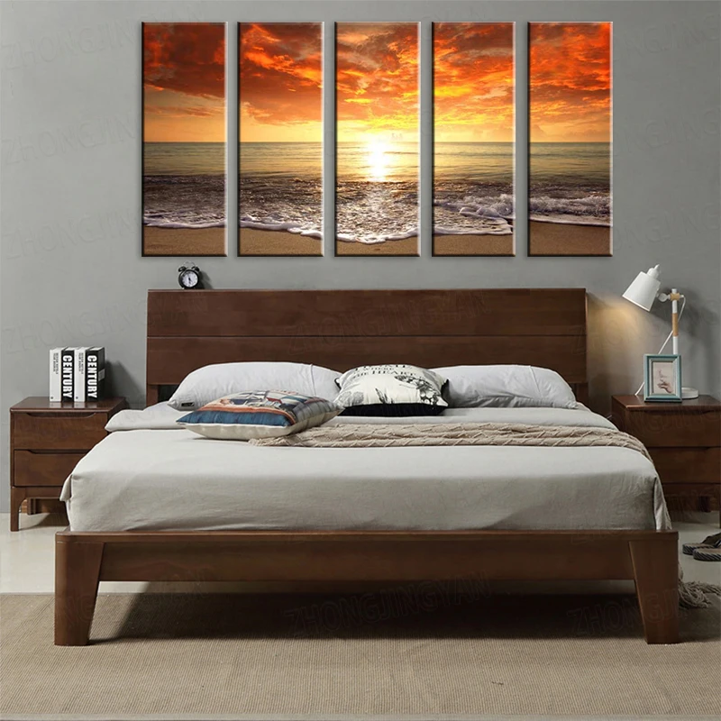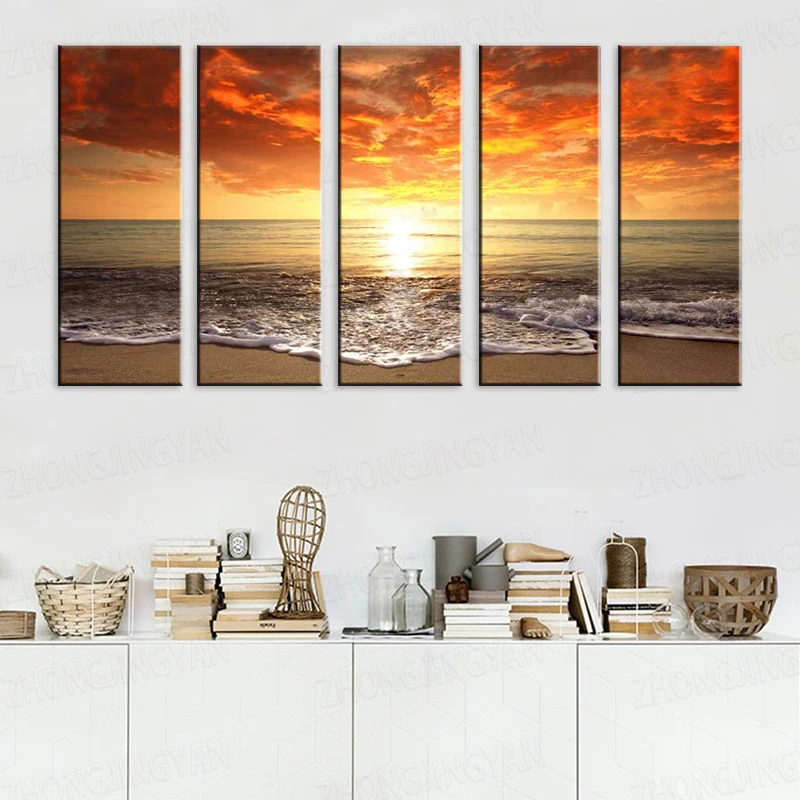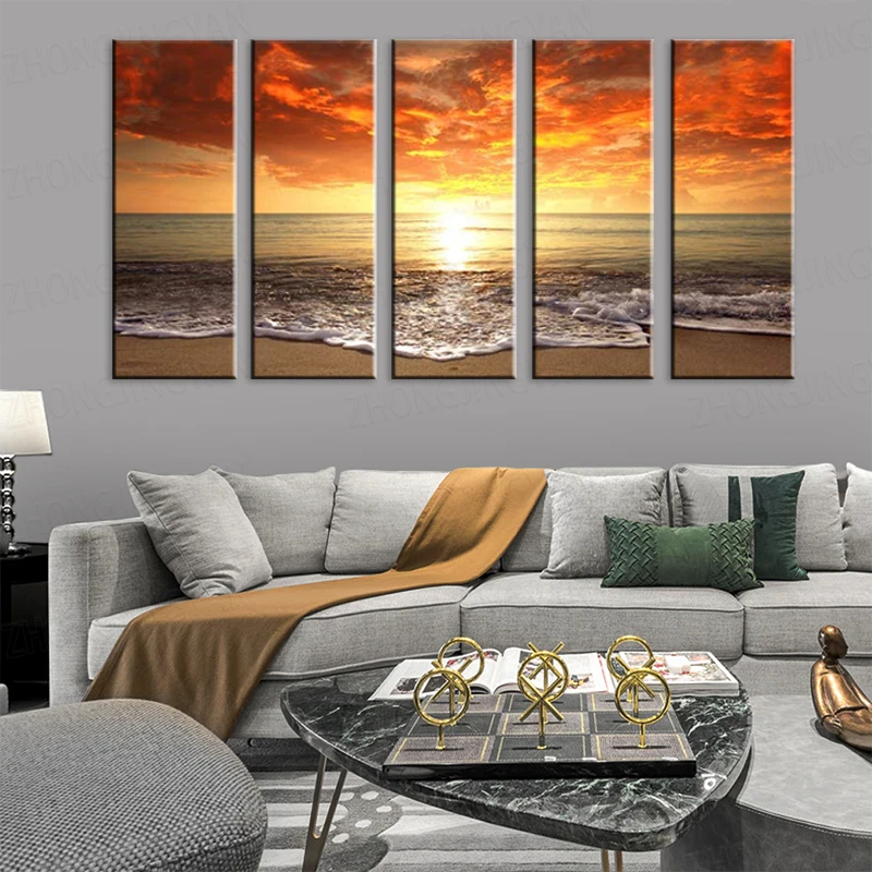 Морской пейзаж с волнами, холст, настенное искусство, закат, океан, пляж, картины для гостиной, спальни, домашние украшения, современные растягивающиеся и