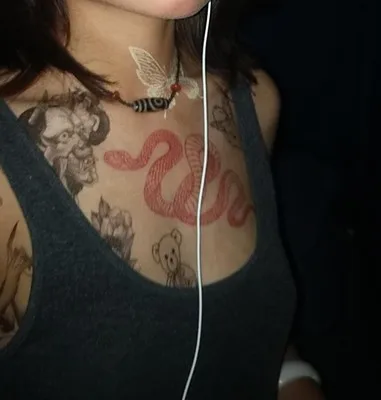 Водостойкие временные тату-наклейки в виде Красной змеи большого ра...