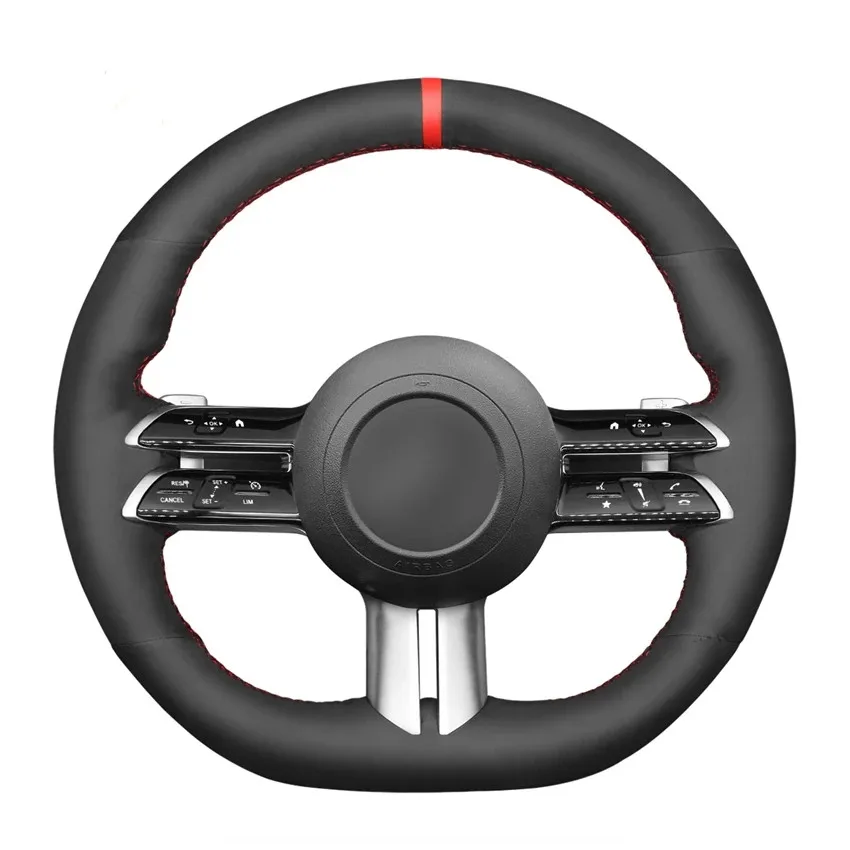 Рука Шить черная замша красный маркер чехол рулевого колеса автомобиля для Mercedes Benz C класса W206 2021 e-класс W213 2021