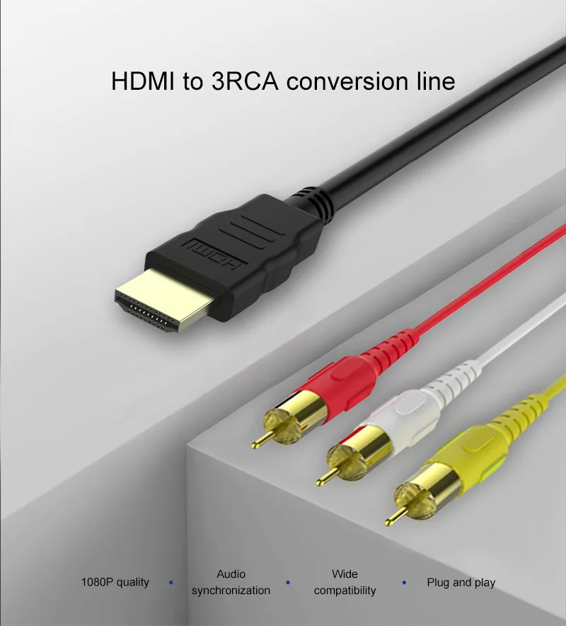 Кабель Hdmi-Rca, переходник со штекера Hdmi на 3rca Av, композитный...