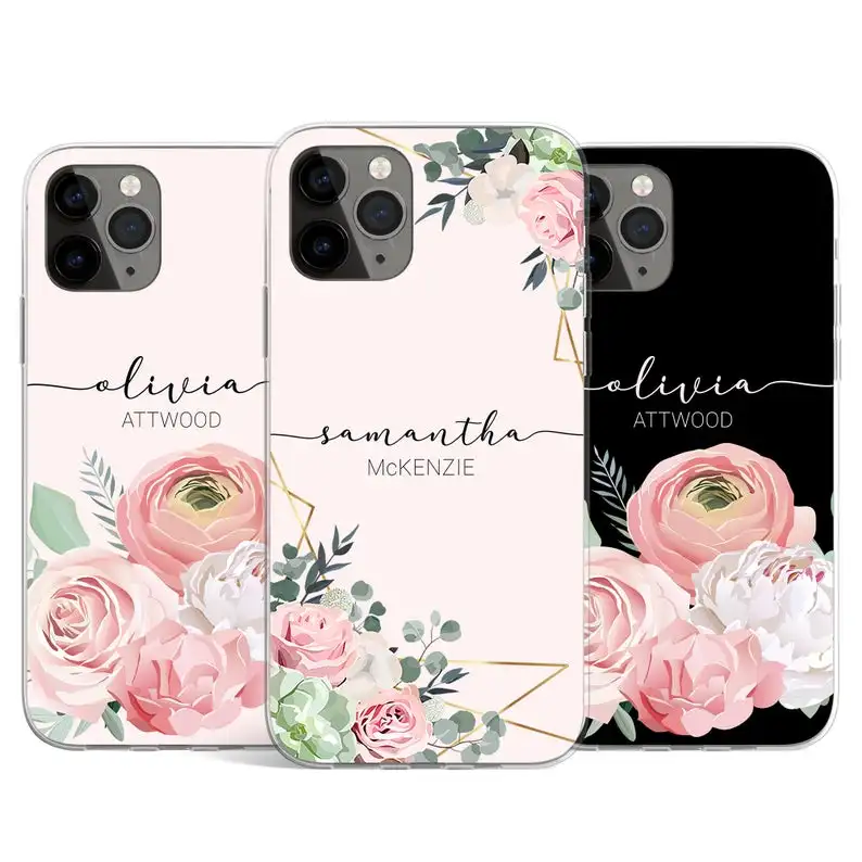 Maifengge персонализированный Чехол для телефона с изображением имени и цветочным рисунком для iPhone 11 12 13 Pro Max mini 6s Plus 7 8 X Xs max Xr