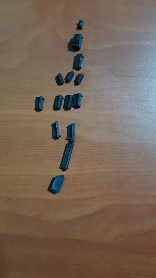 Сделаны они точно в размер, но держатся слабо, поэтому для стационарного компьютера подойдут, а для того, что будут носить, скорей всего они вывалятся. Сделаны из неплохой чёрной резины. Заглушки не глубокие, на контакты в разъёмах не нажимают.