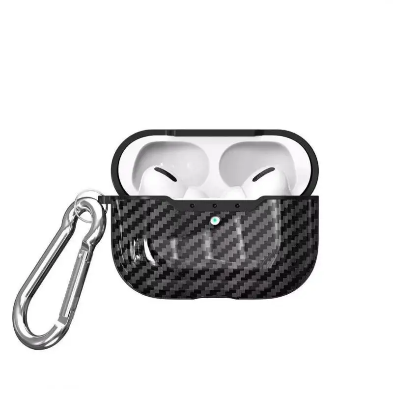 Чехол для наушников из углеродного волокна, противоударный защитный чехол для Apple AirPods Pro с пряжкой для ключей
