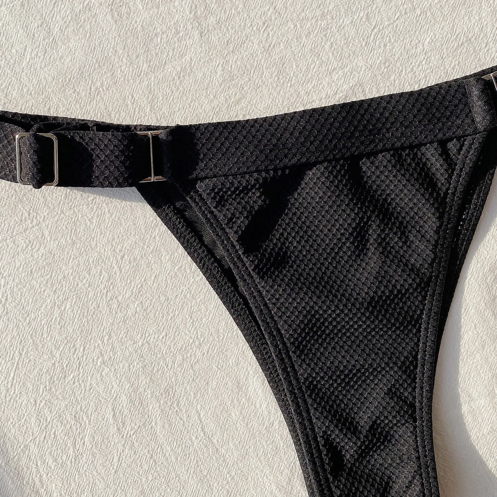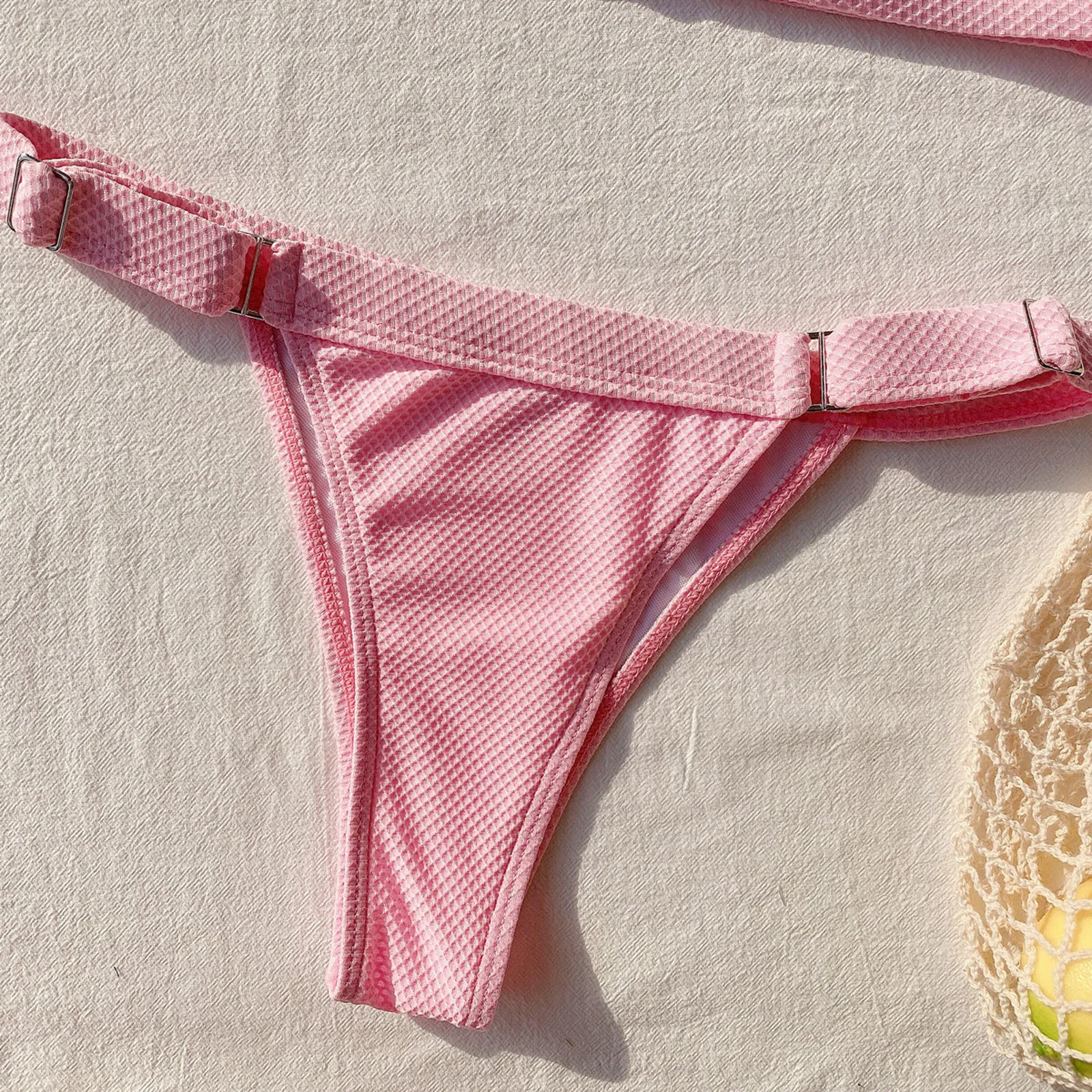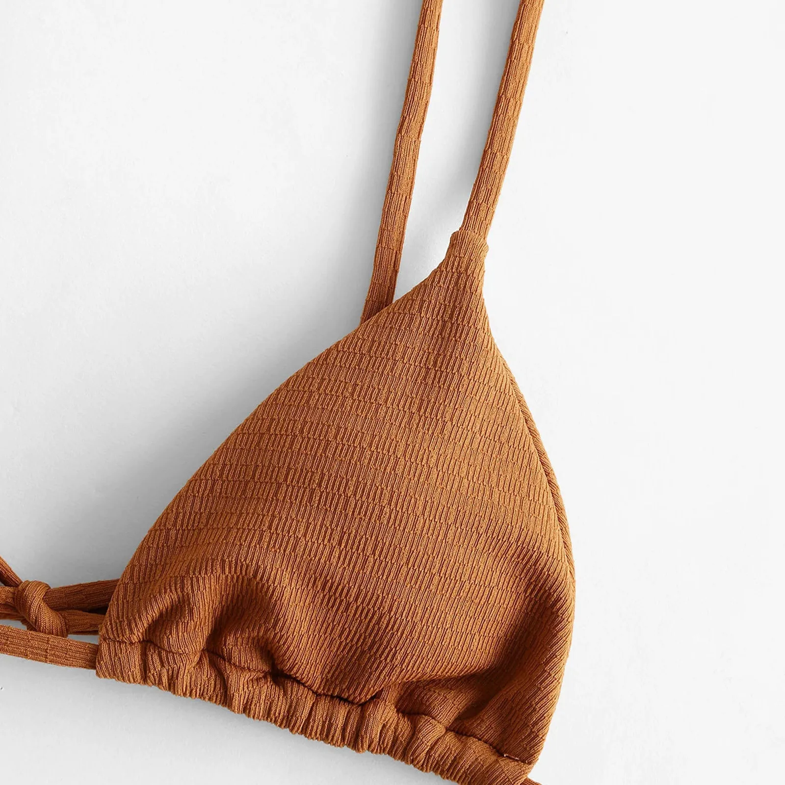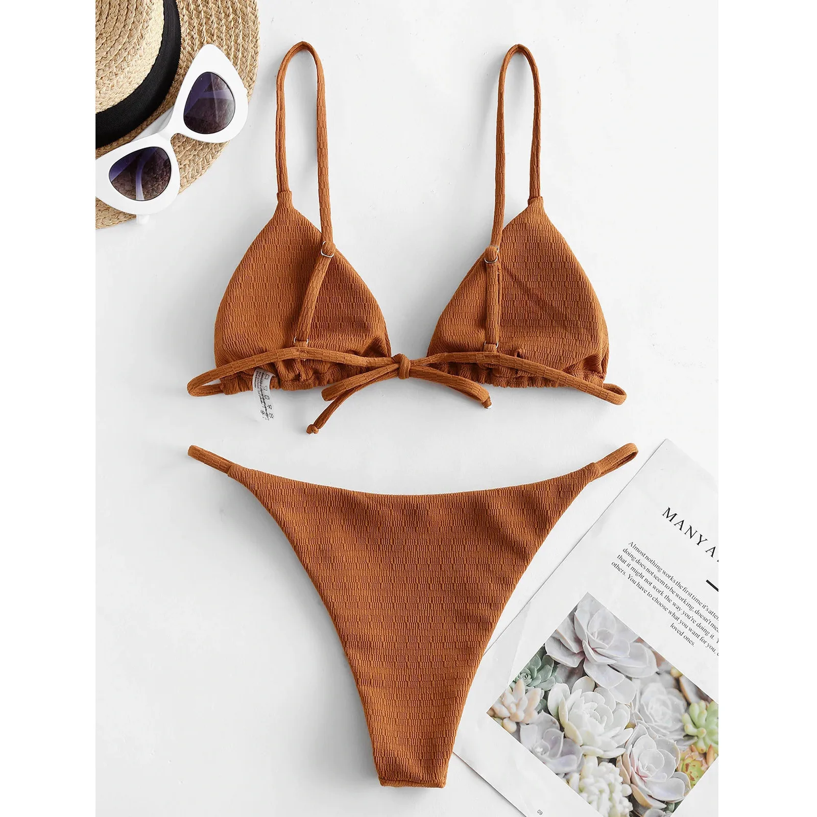 Комплект бикини женский однотонный в рубчик, купальник из двух предметов, Топ бикини с чашками пуш-ап, Трусы-стринги с высокой посадкой, с чашками треугольной формы