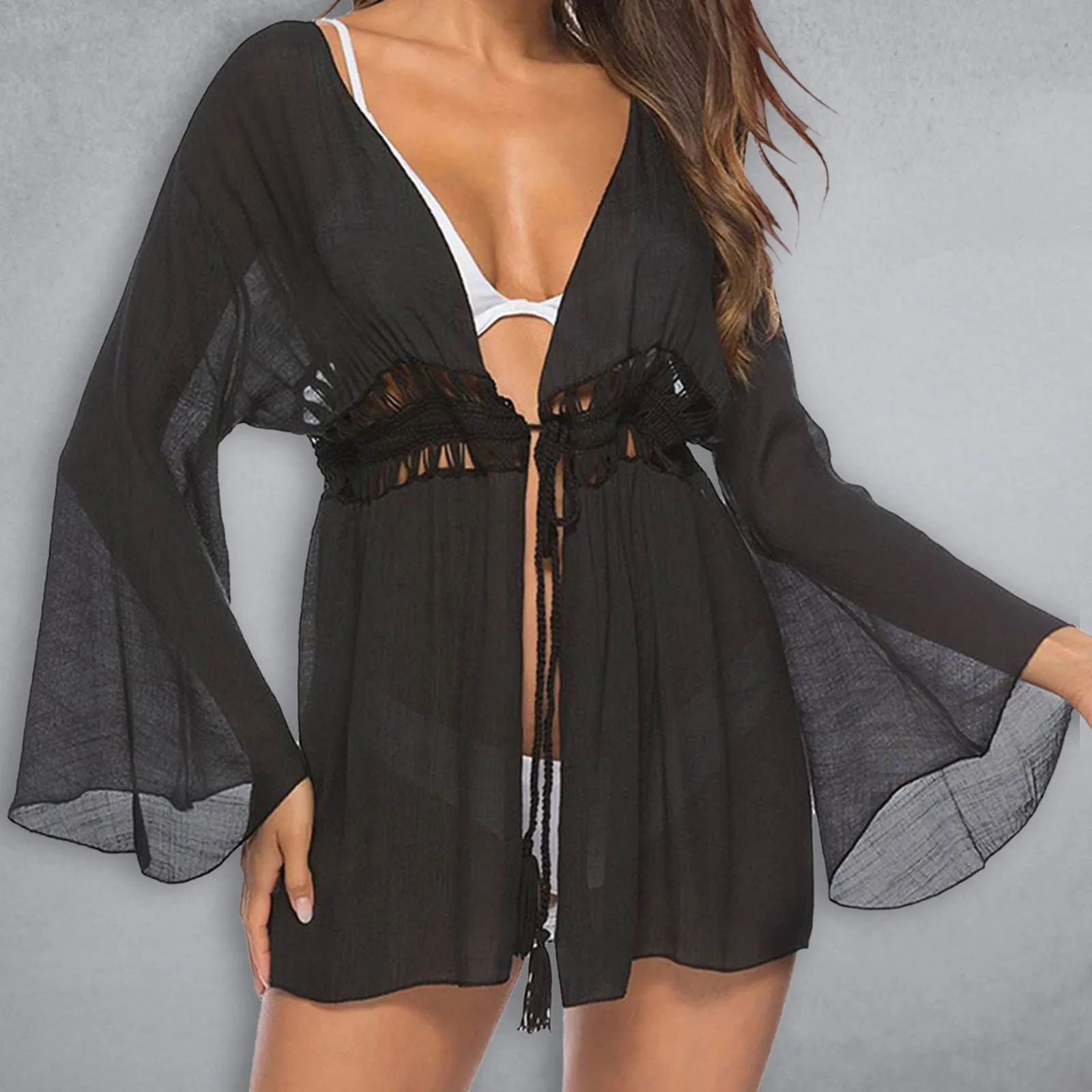 Пикантные накидки на бикини, Белая Туника, повседневное летнее пляжное платье, Женская пляжная одежда больших размеров, кимоно, купальный костюм, накидка, пальто