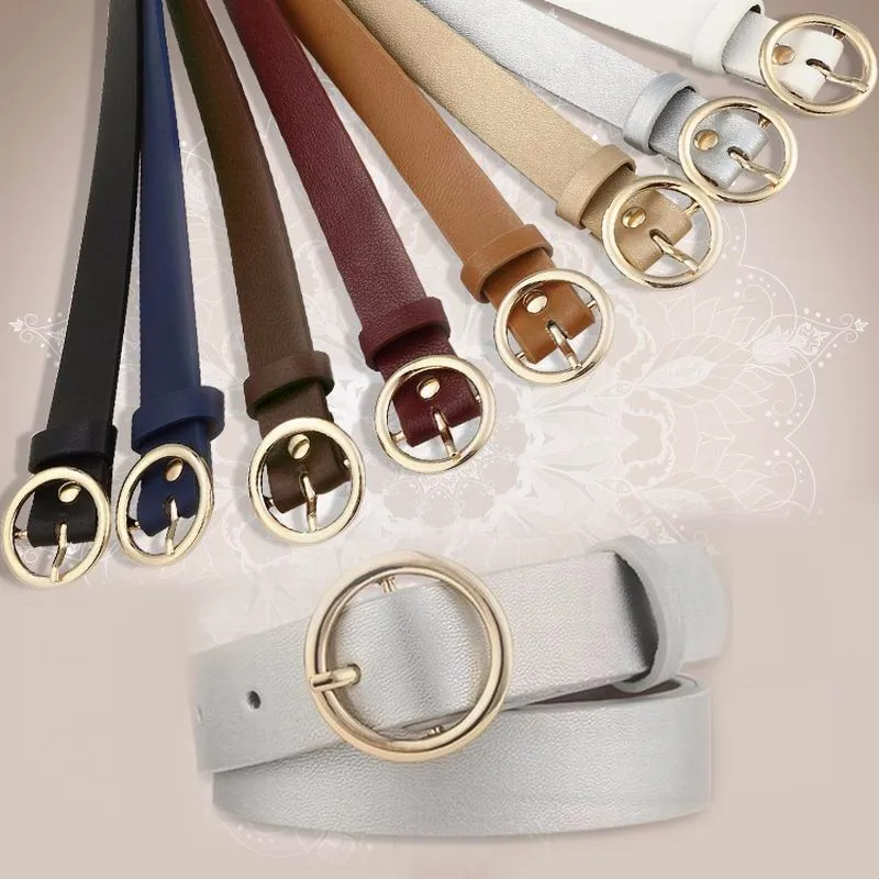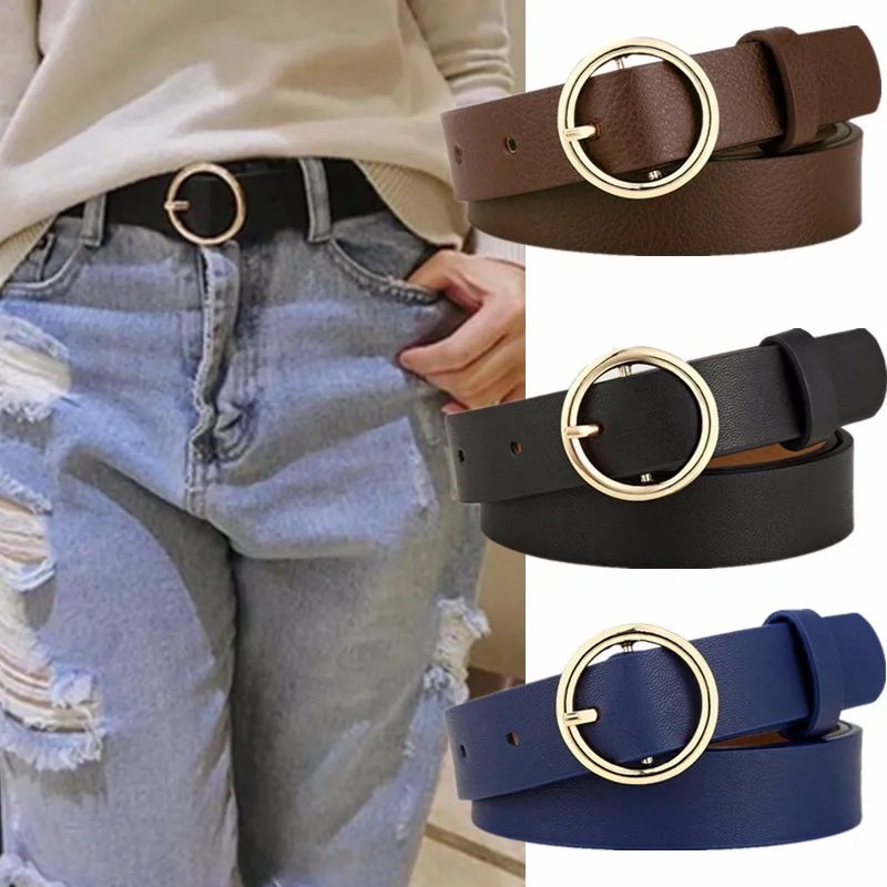Ремень с пряжкой Женский Повседневный, Модный классический пояс из искусственной кожи с круглой шпилькой, для джинвечерние 8 цветов