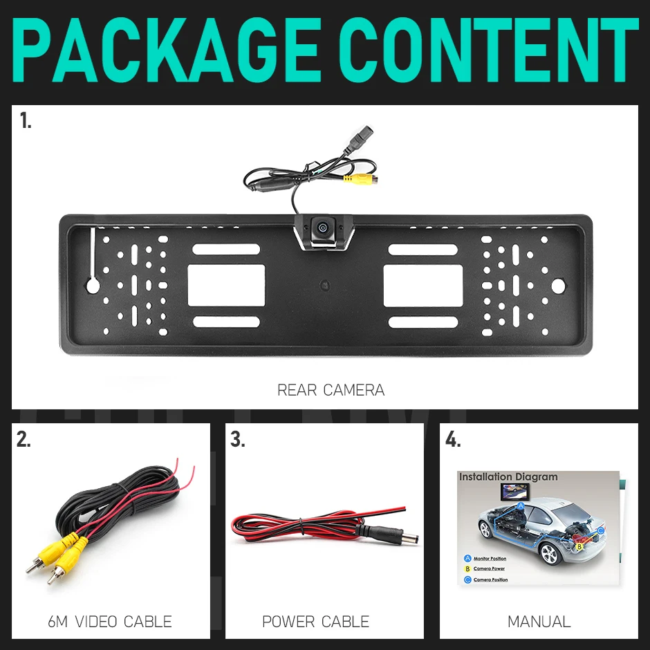 1. Задняя камера2. Коробка для посылка3. Видео кабель (6 м)4. Кабель питания5. Руководство пользователя