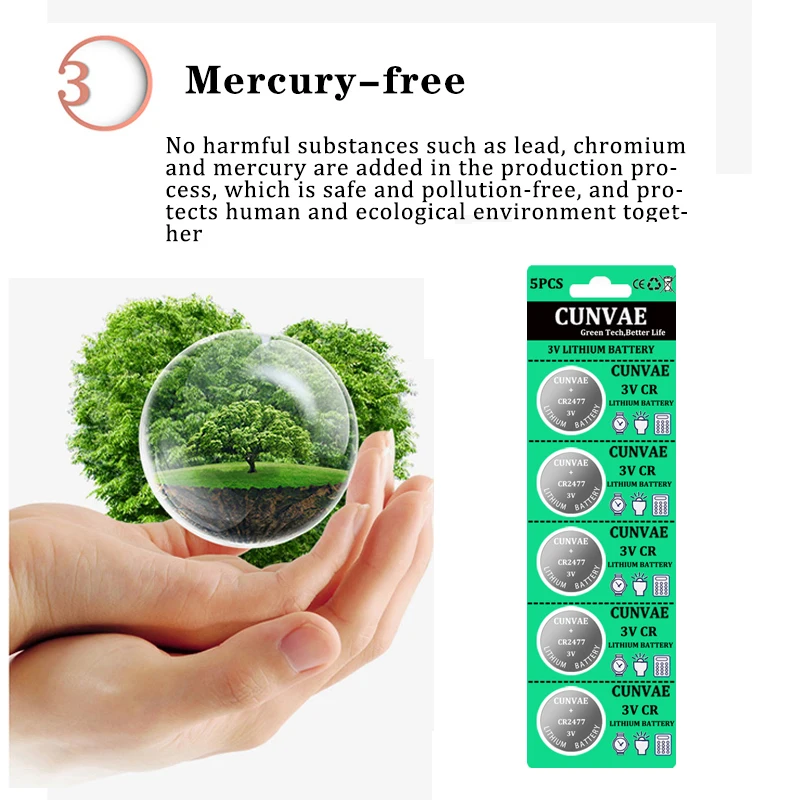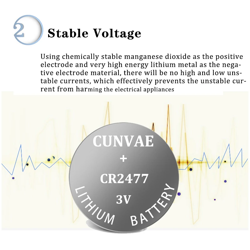 Тип батареи: батарея CR2477 3V литиевая батарея BR2477 Бренд: CUNVAE Химия: батарея LiMnO2 Номинальное напряжение: 3 в Критическое напряжение: 2,0 V Нормальная Емкость: 1000 мАч Непрерывный ток: 3 мА (максимум) Импульсный ток: 10 мА (максимум) Максимальный размер: 24,5x7,7 мм Температура: от-40 до + 60 градусов Цельсия Также может быть известен как: EB-CR2477, EB-CR2477_140, BR2477, BR2477-1W, CR2477, DL2477, ECR2477, KCR2477, LM2477 Применение: компьютеры, камеры, цифровые камеры, КПК, пульты дистанционного управления, видеокамеры, электронные игры, часы, калькуляторы, электронные инструменты, автомобильная сигнализация безопасности, MP3-плееры, светодиодный индикатор, цифровые диктофоны, игрушки, глюкоза в крови, тестирование холестерина, счетчики