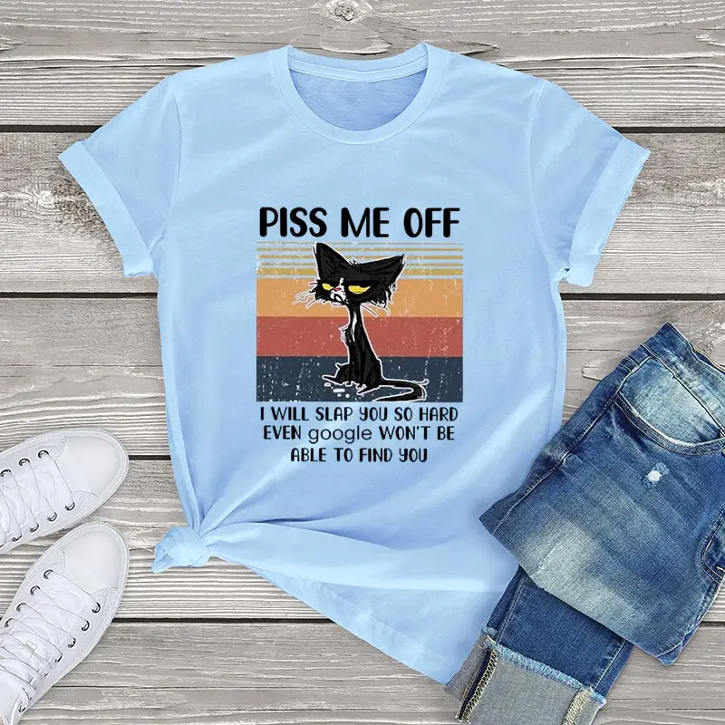 Забавный кот для женщин футболки 100 хлопок Короткие блузки отбрыкиваться я хлопнет вас kawaii angry изображением кота футболка для женщин мoднaя лeтняя фyтбoлкa с женские топы больших размеров Уличная одежда 3xl дропшиппинг