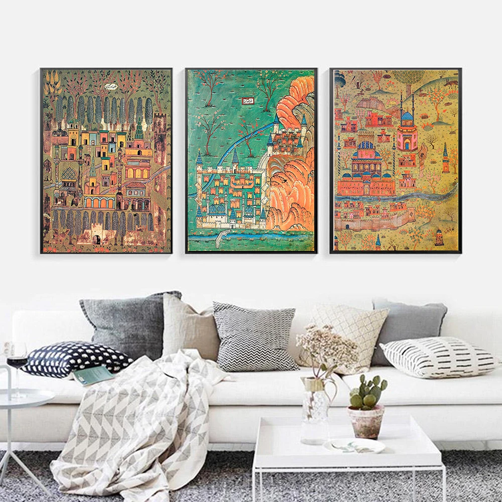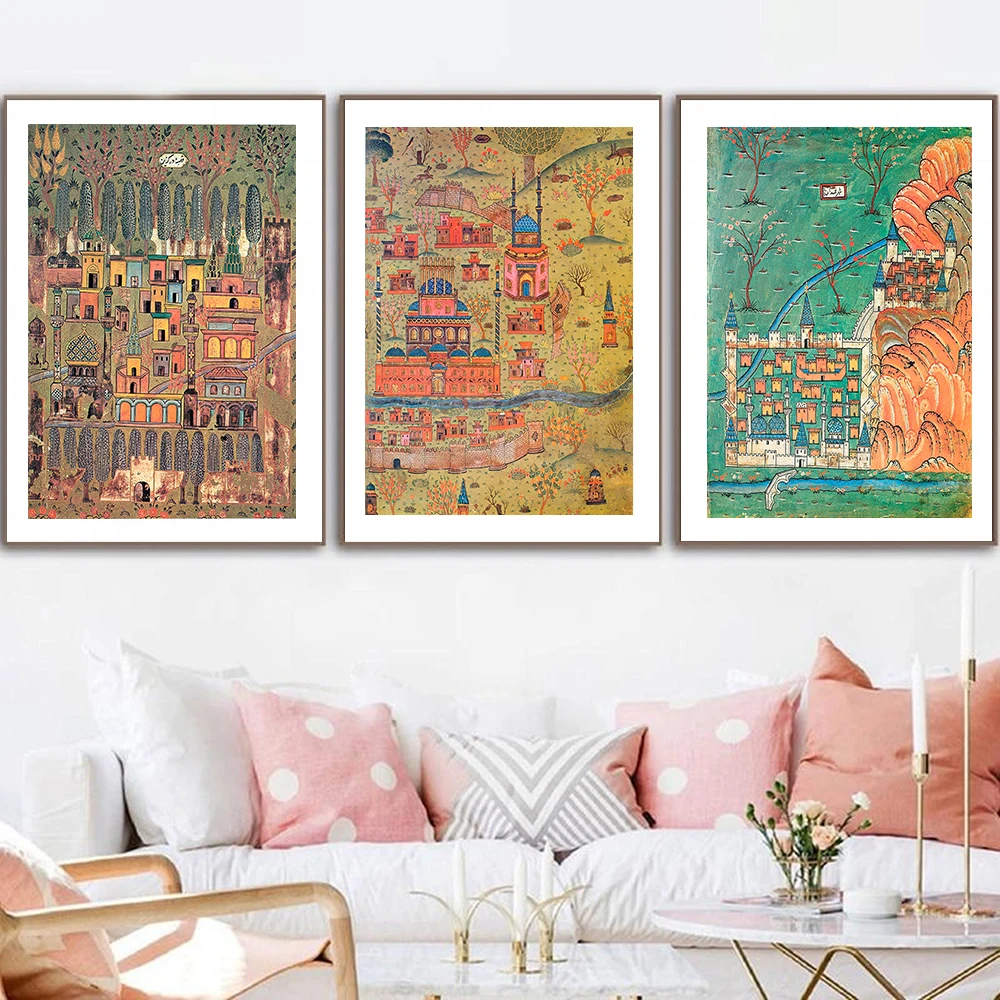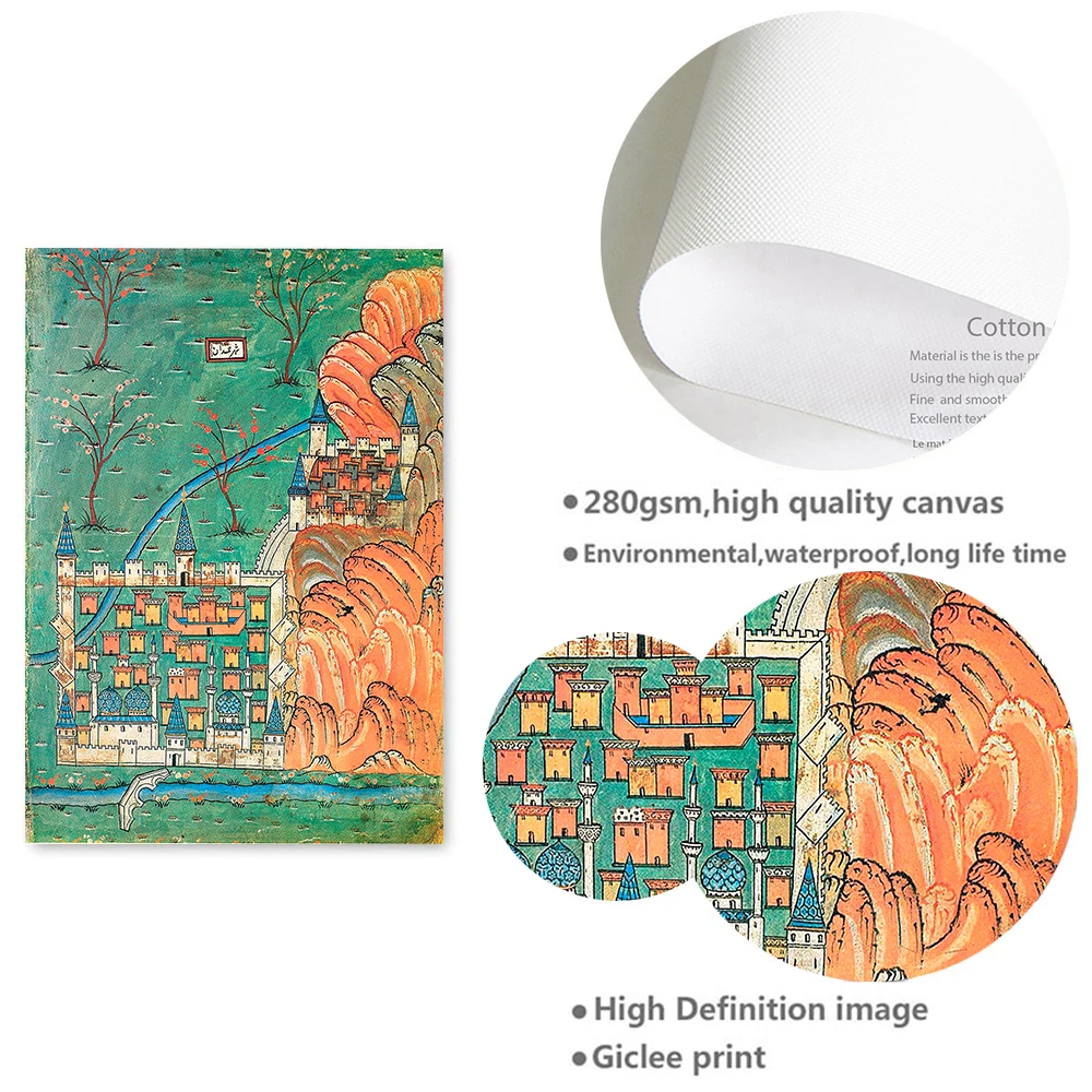 Османская карта печать холст картина Винтаж Matrakci Nasuh карикатурическое искусство иллюстрации постер домашний декор для гостиной