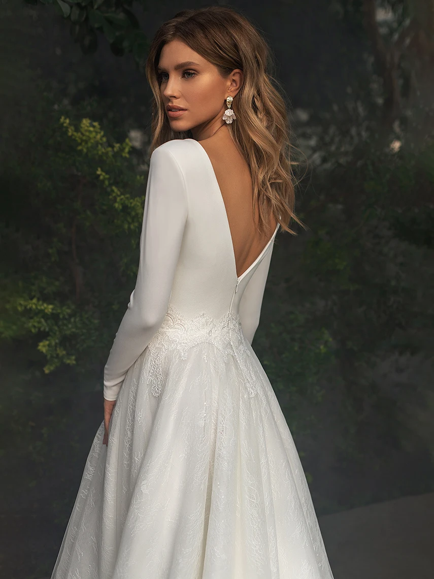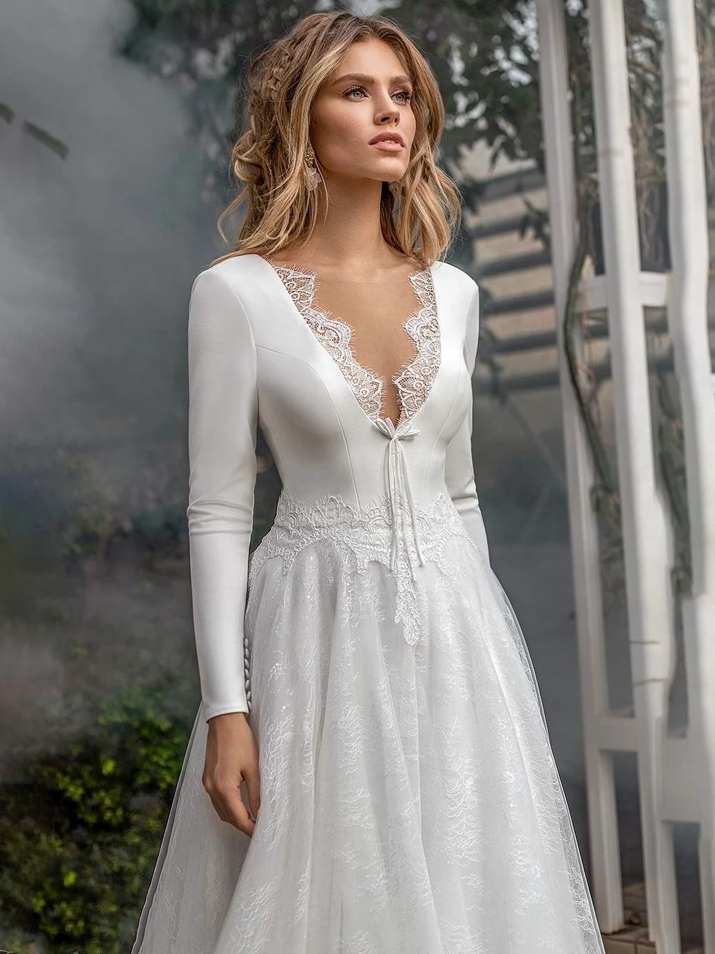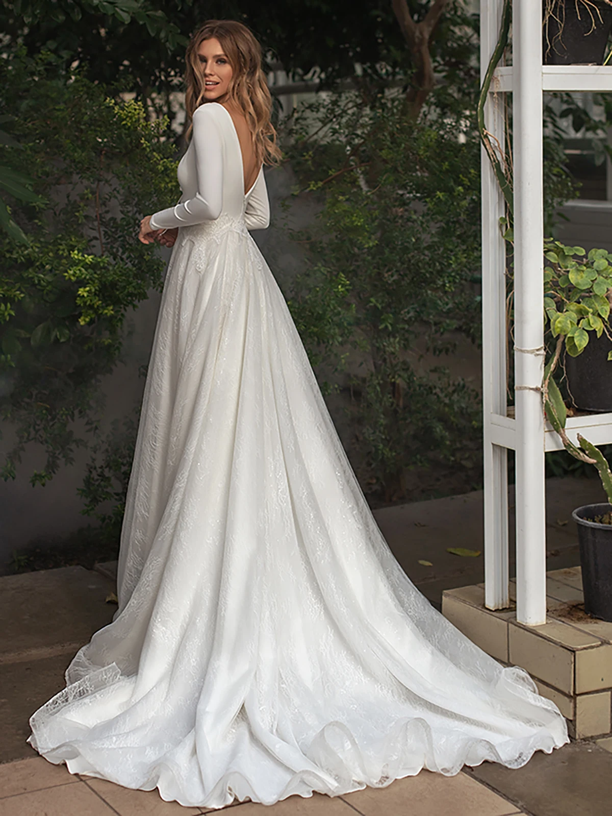 Реальные фотографии, атласные с длинным рукавом, стиль кантри, v-образный вырез, винтажные элегантные кружева шантильи, с открытой спиной, Гламурные свадебные платья