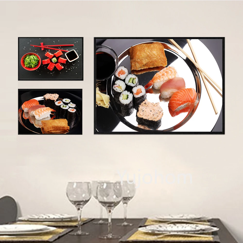 Набор сашими для суши, палочки для еды и сои, ролл для суши с лососом, настенная живопись, холст, печать, плакаты, столовая для кухни, домашний декор