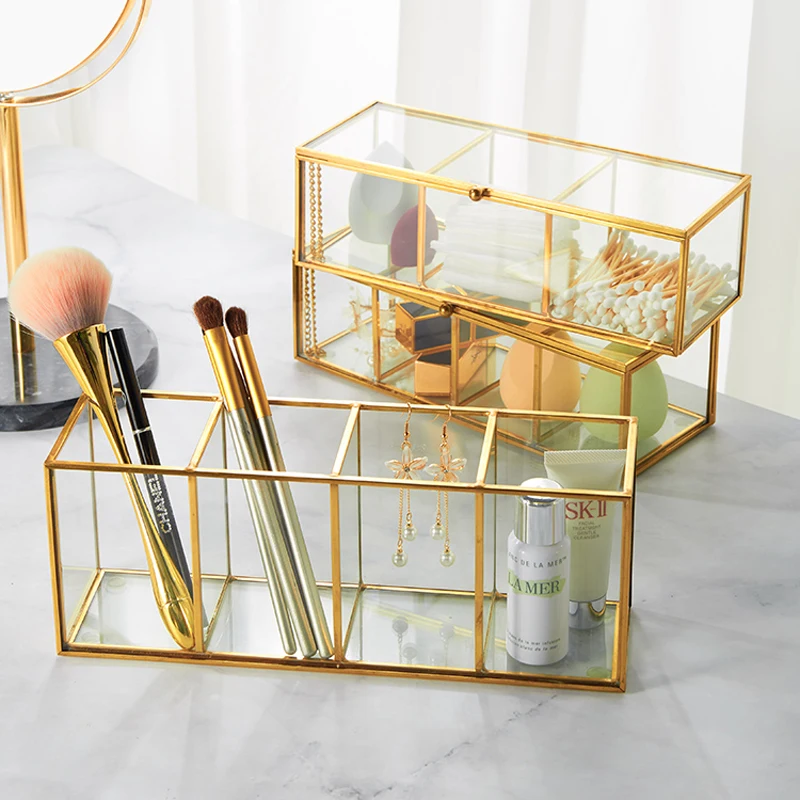 Роскошная прозрачная стеклянная коробка для макияжа, коробка для хранения косметики, органайзер для кистей для макияжа, карандаш, держатель для помады, органайзер для инструментов для макияжа, чехол