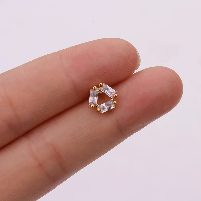 Серьги-гвоздики с фианитами, ушной хрящ, из нержавеющей стали, золо...