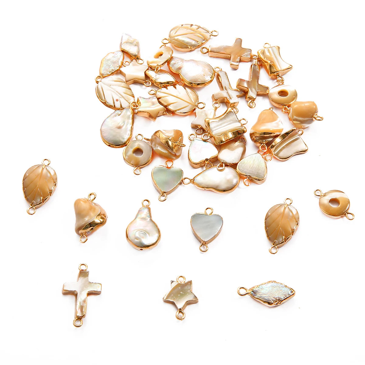 Подвески из натурального пресноводного кулон с жемчужной раковиной Соединитель с двумя отверстиями для изготовления ювелирных изделий сделай сам, серьги, ожерелья, аксессуары, 1 шт.