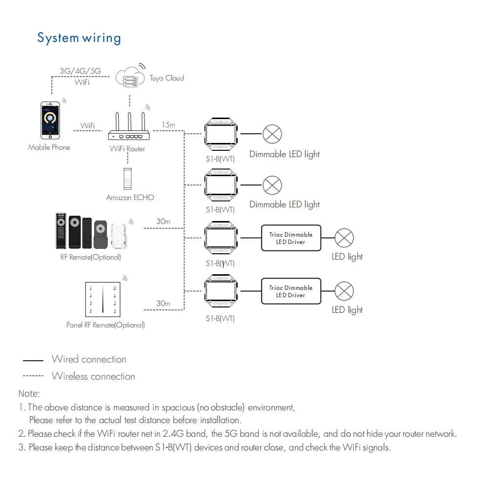 S1-B(WT) работает в качестве WiFi-RF преобразователя для соответствия с другим RF затемнением светодиодный контроллер или драйвер