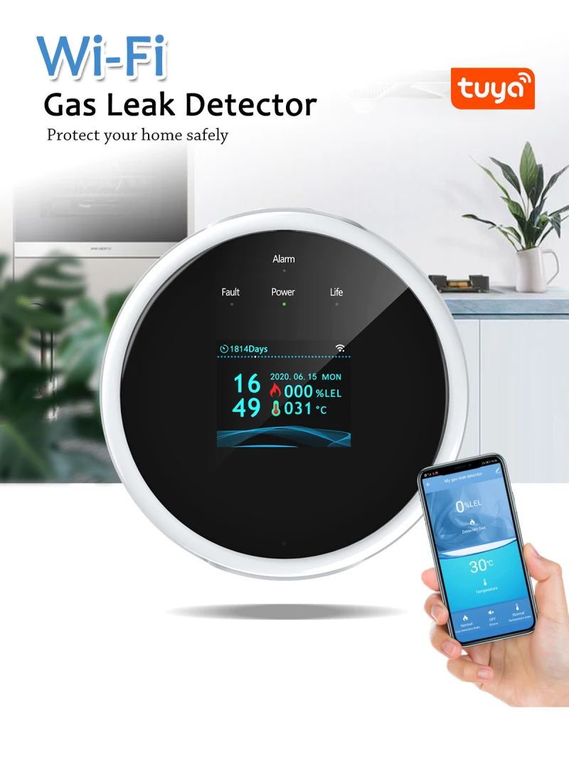 Смарт-датчик утечки газа Tuya с Wi-Fi и ЖК-дисплеем