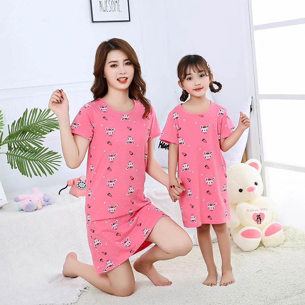 Детская летняя ночная рубашка для девочек, одежда, ночная рубашка с рисунком улыбки, детская одежда, пижама с коротким рукавом, Платье женское