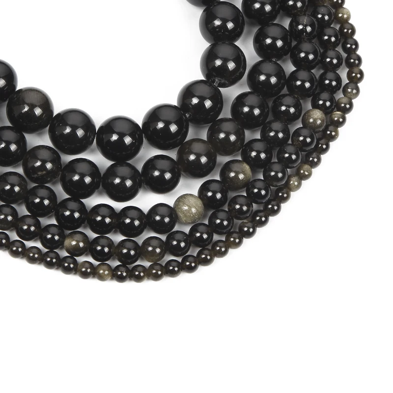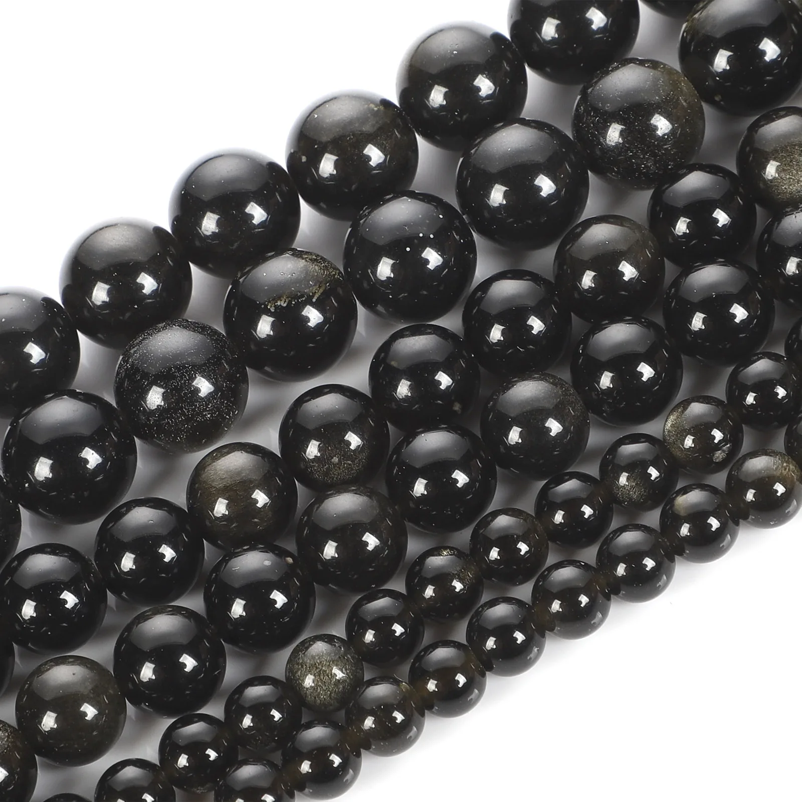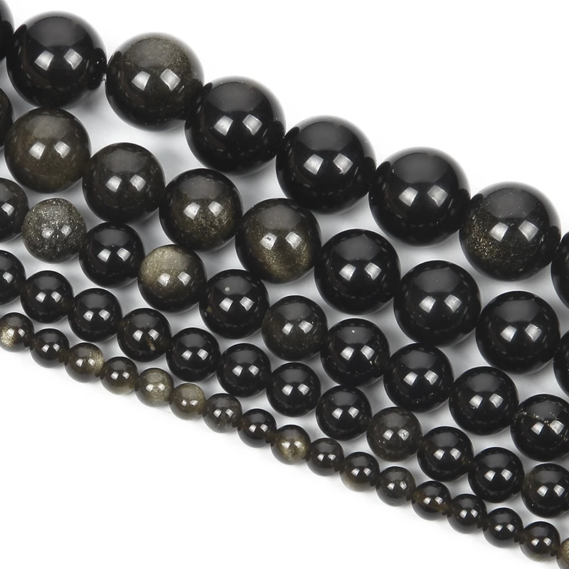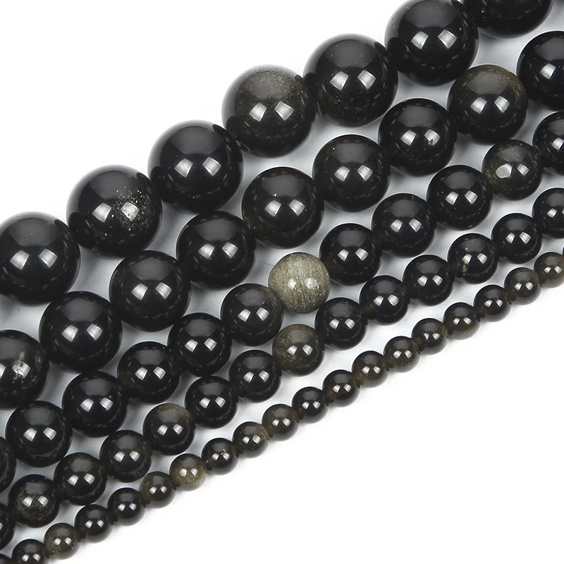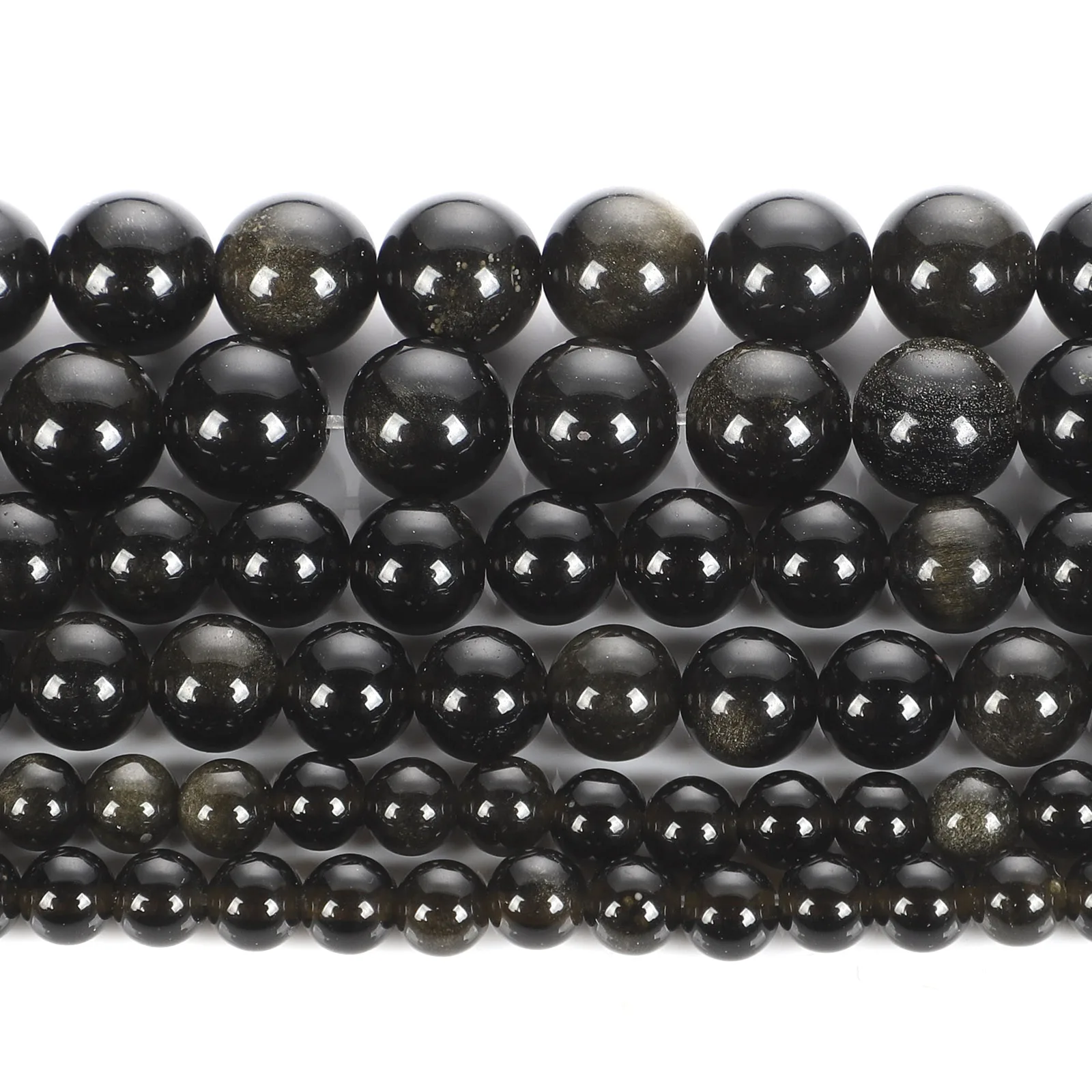 Бусины из натурального камня, золотистые обсидиановые круглые бусины россыпью для изготовления ювелирных изделий, рукоделия, браслетов, сделай сам, 4-12 мм