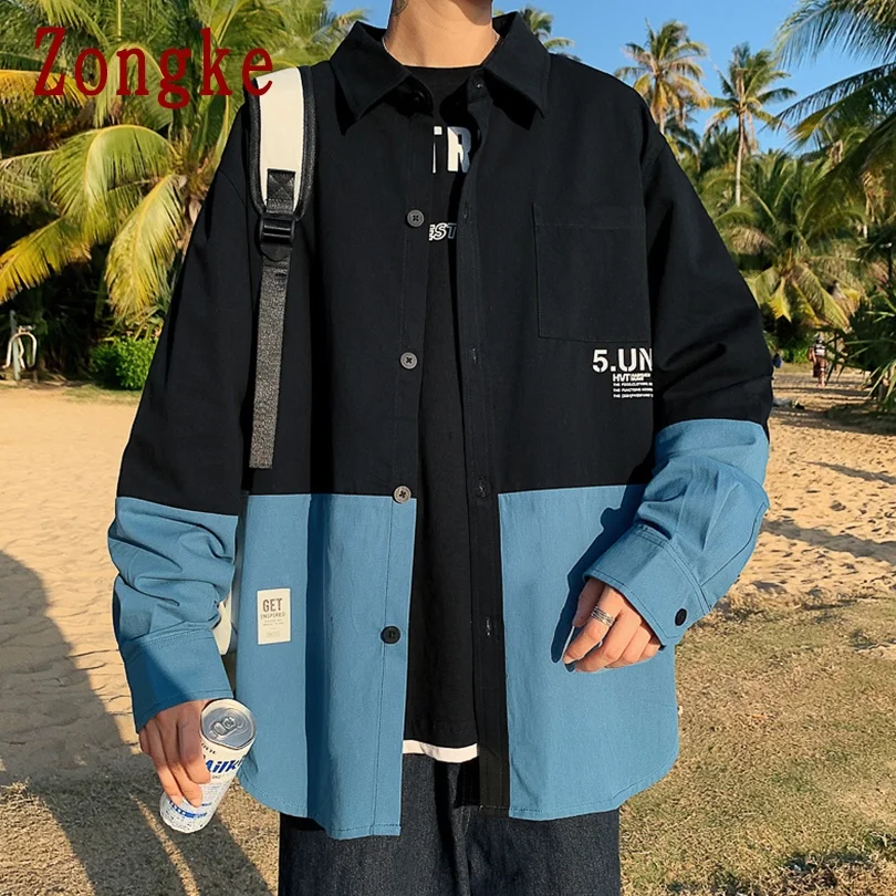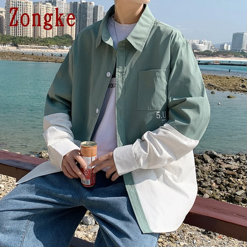 Повседневные рубашки Zongke в стиле пэчворк для мужчин, мужская одежда, рубашка на пуговицах, мужские модные рубашки в Корейском стиле, женская одежда, Новое поступление 2022