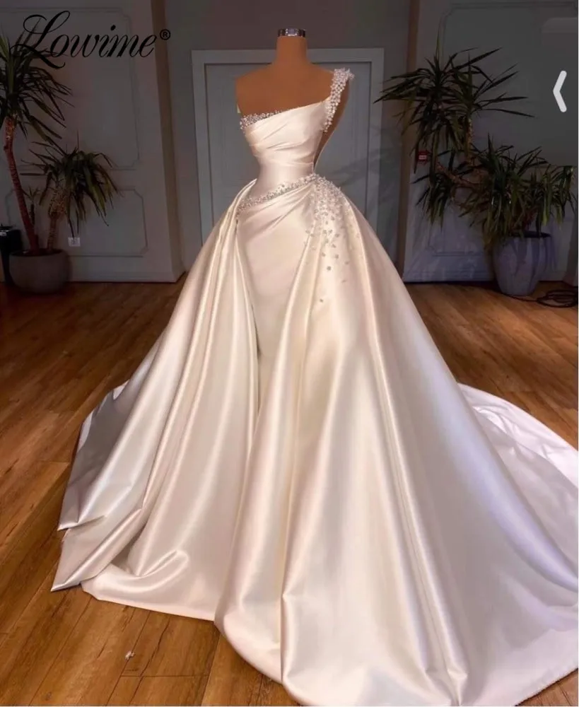 Женское вечернее платье-Русалка Lowime, длинное платье с жемчугом, украшенное бисером, модель 2021 по индивидуальному заказу, для выпускного, арабское праздничное платье