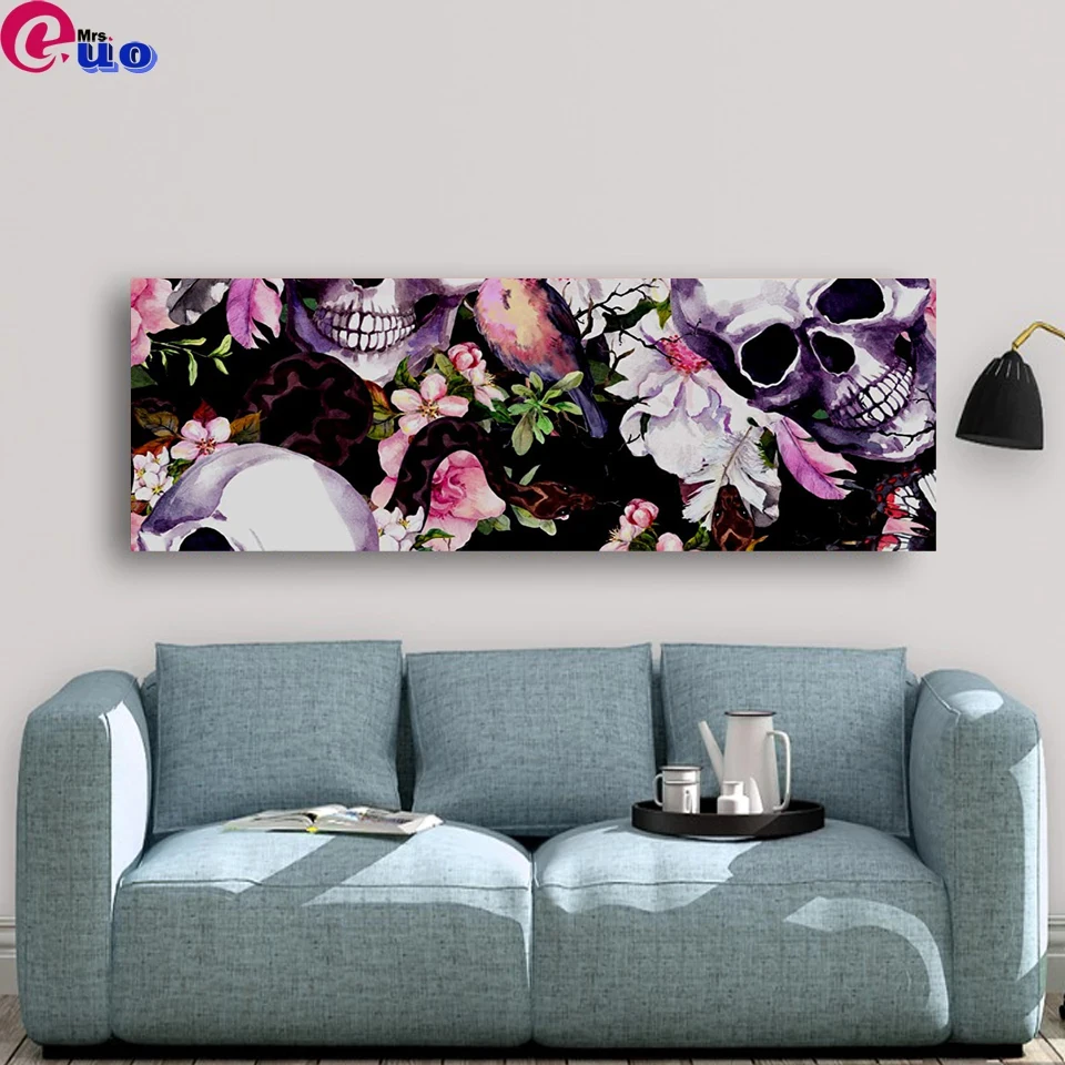 Полностью квадратная/круглая дрель 5D DIY Алмазная картина "Человеческие черепа с цветами" вышивка крестиком 5D домашний Декор подарок