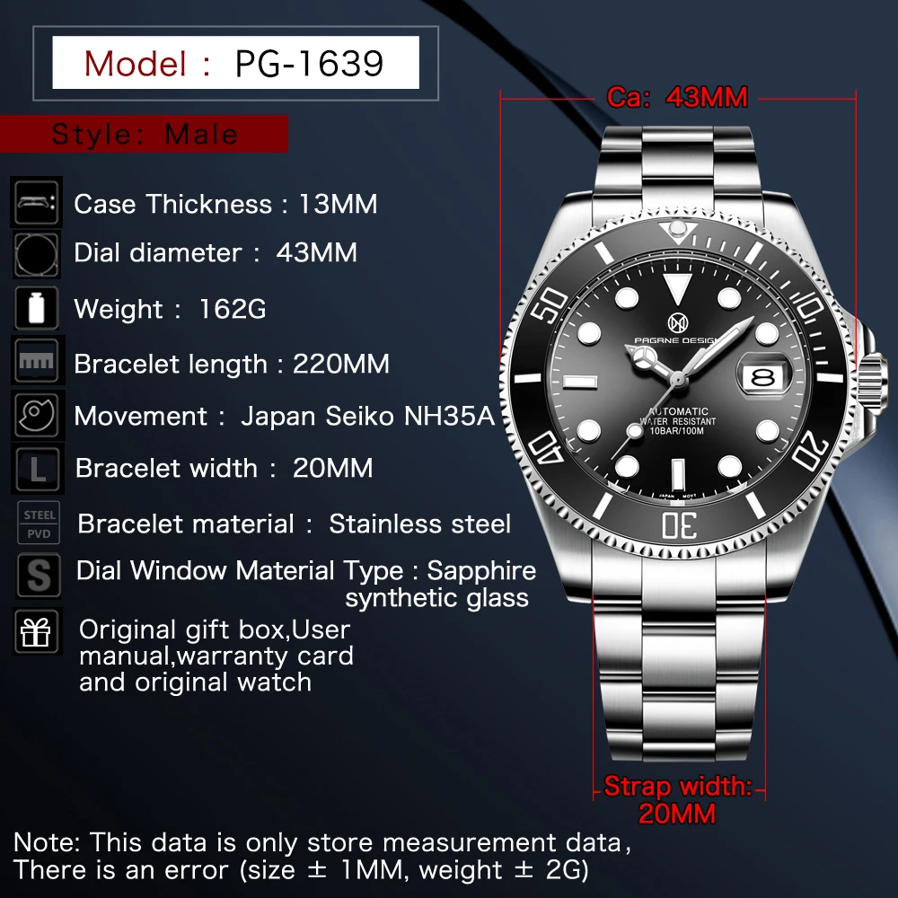 Часы PAGANI DESIGN мужские водонепроницаемые, из нержавеющей стали, 43 мм