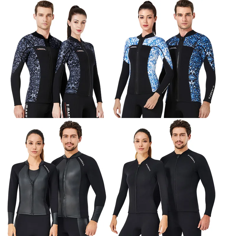 3 мм1,5 мм2 мм Гидрокостюмы куртка с длинным рукавом неопреновые гидрокостюмы Топ гладкая кожа передняя молния рубашка для мужчин женщин мужчин