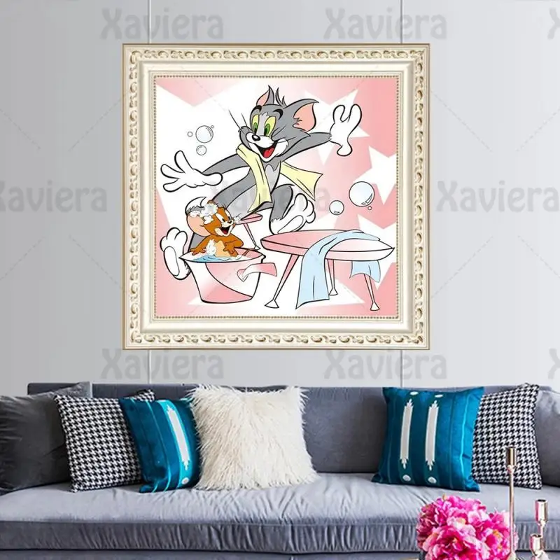 Алмазная живопись 5D "сделай сам", мультяшный персонаж, Кот и мышь, вышивка крестиком, искусство, творчество, полная Стразы, домашний декор, без рамки