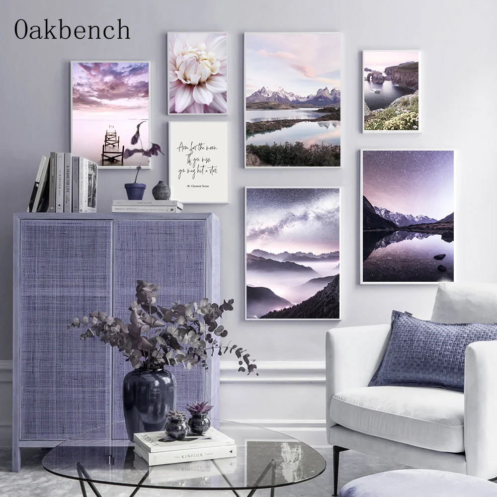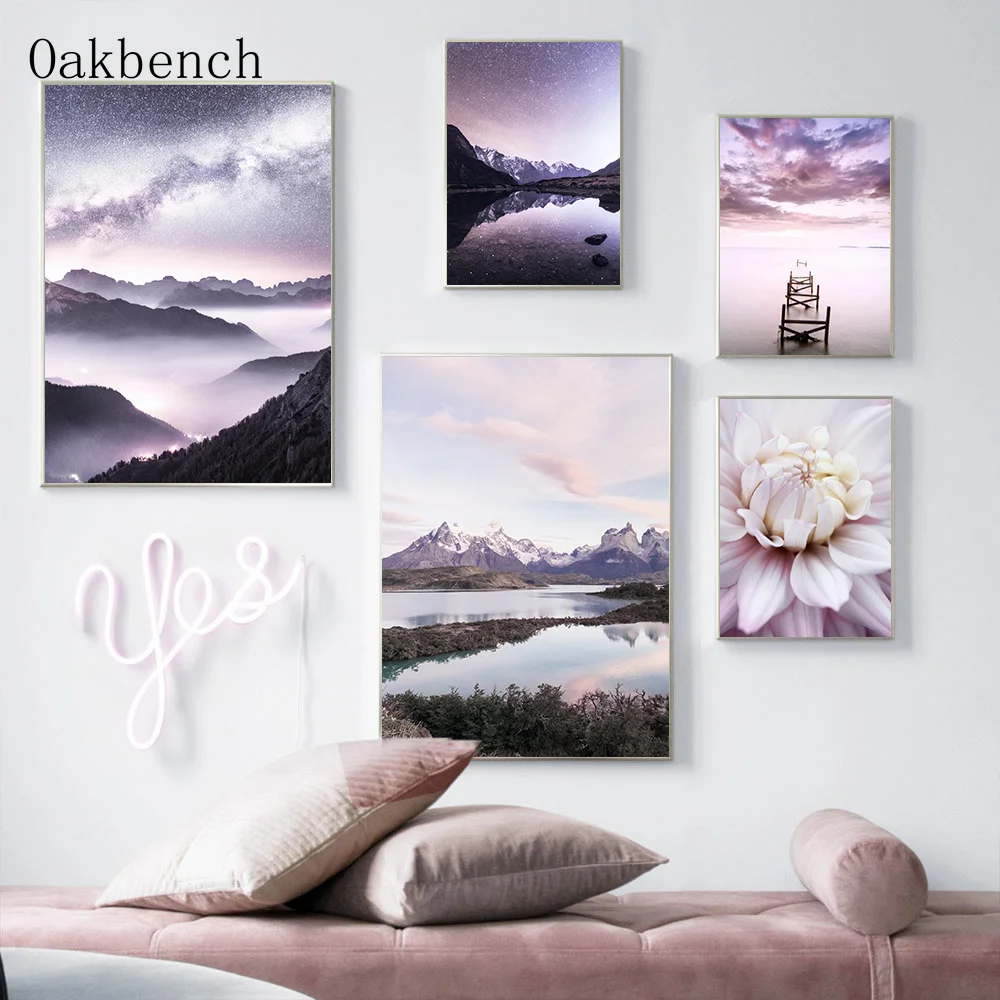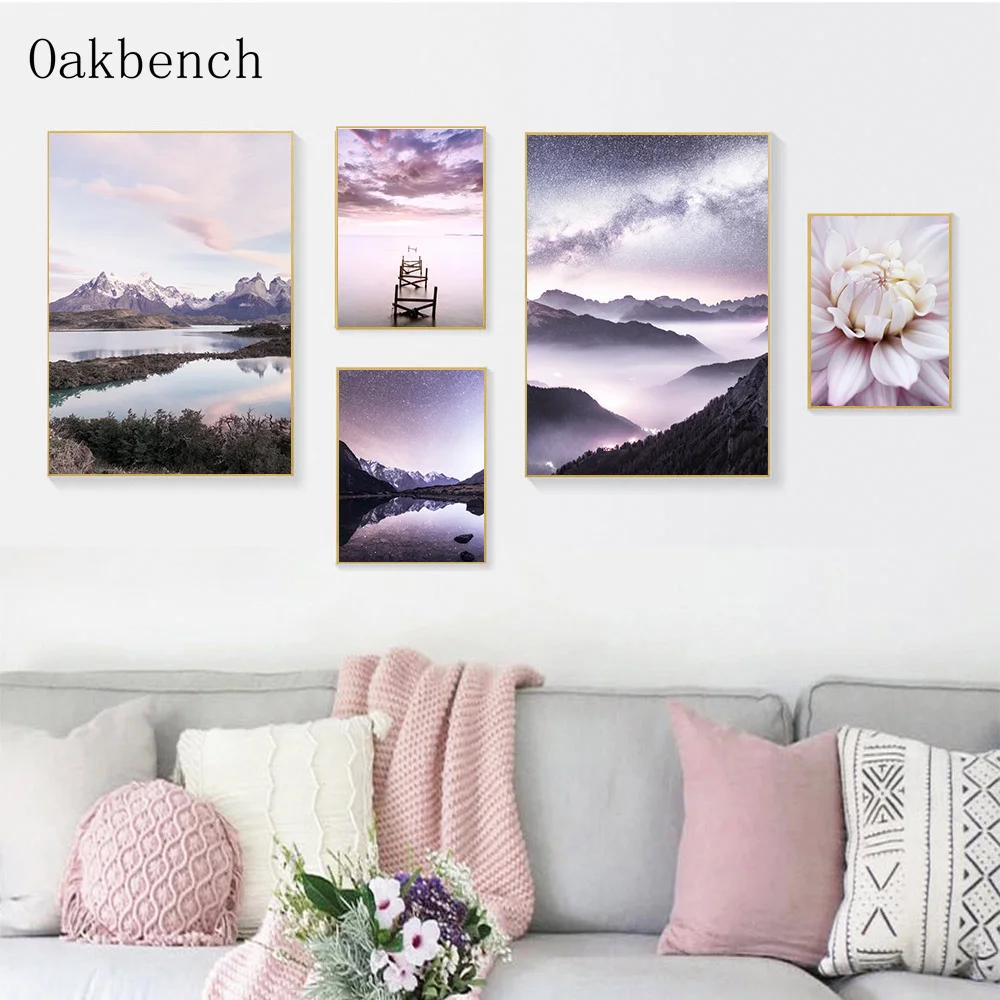 Цвет фиолетовый, бледно-лиловый, пляжные Рид Небесно Wall Art Холст Картина Nordic настенные художественные плакаты и принты картины для Гостиная домашний декор