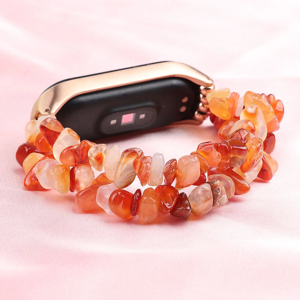 Mi band 3 4 браслет с неровными камнями и бусинами эластичный ремешок для Xiaomi Mi Band 5 6 Global NFC смарт-трекер ремешок для часов Mi6