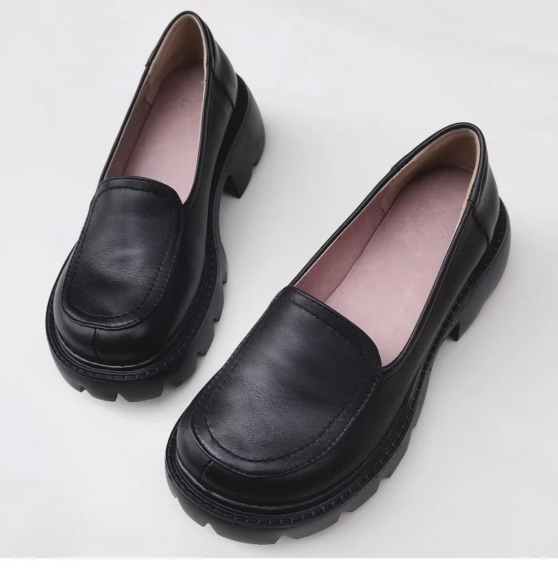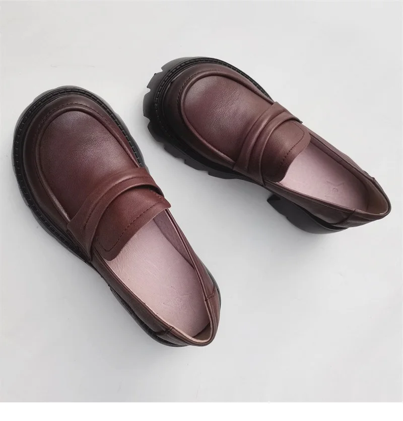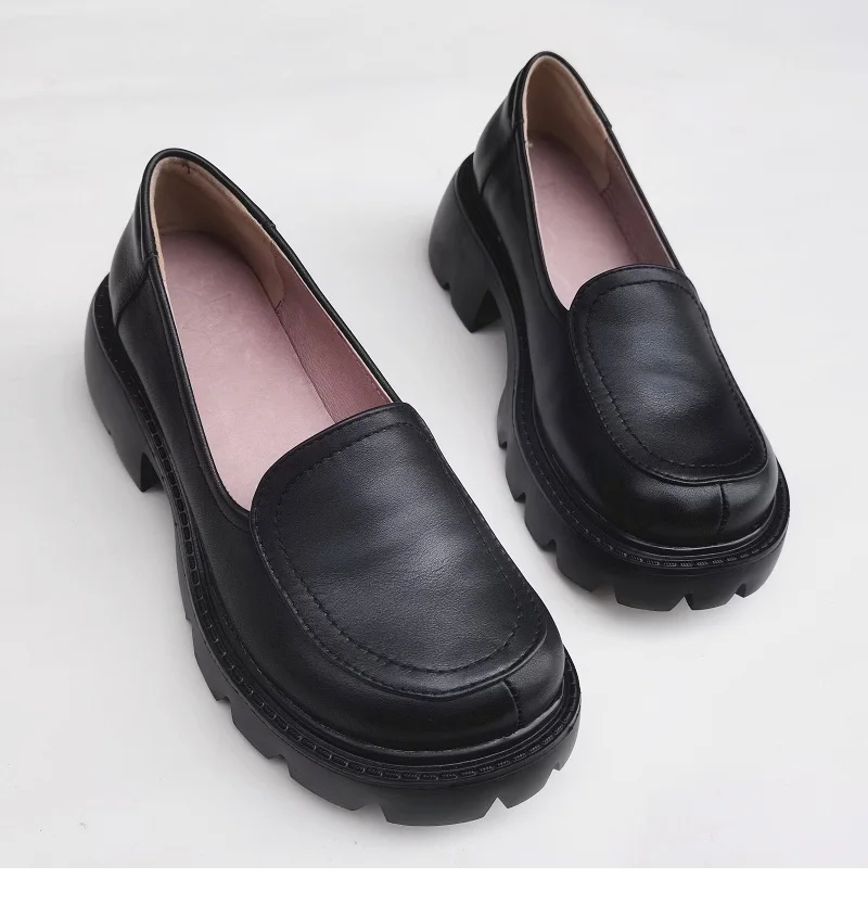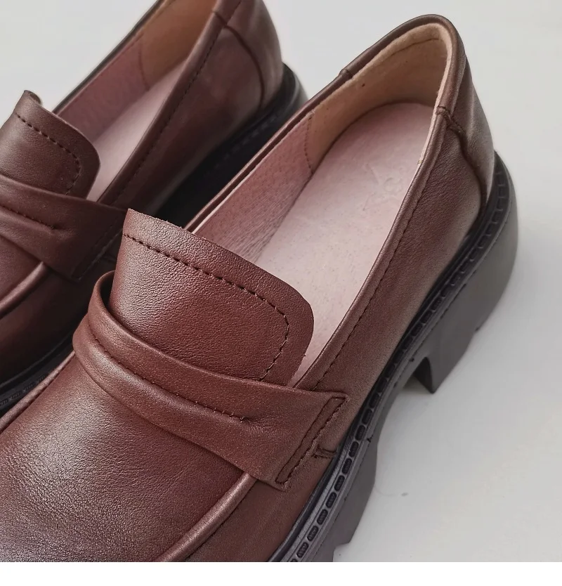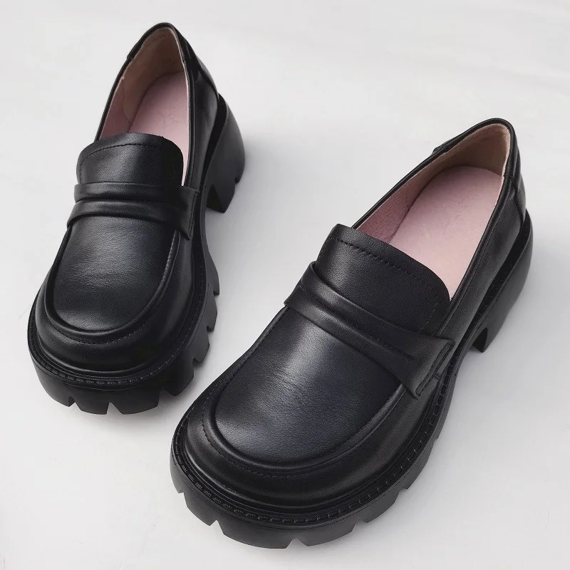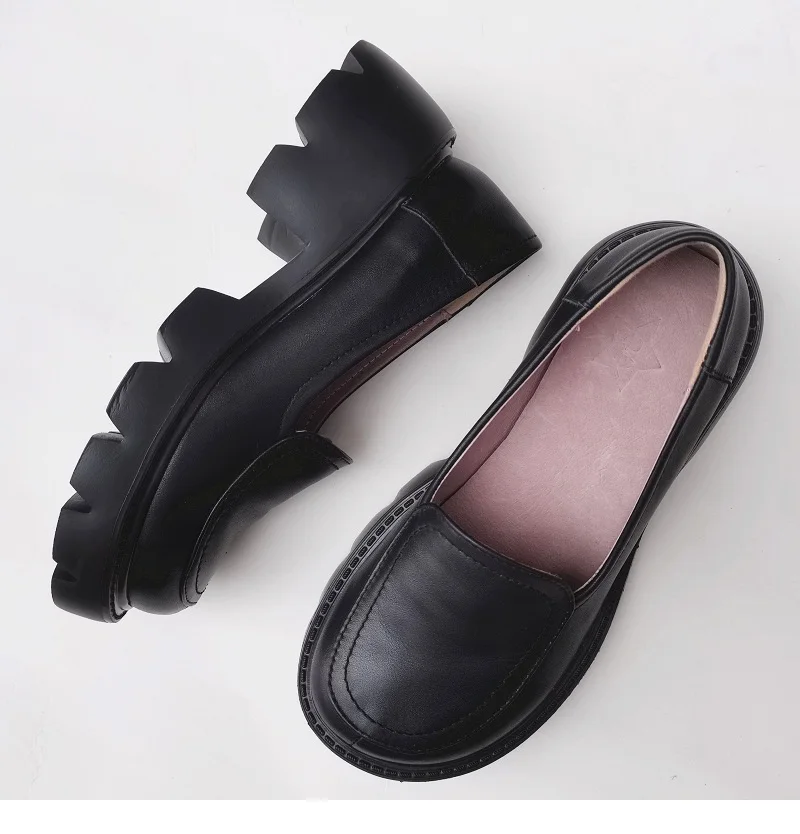 Лоферы женские из натуральной кожи, без застежки, Вулканизированная подошва, плоская подошва, платформа, Весна 2011