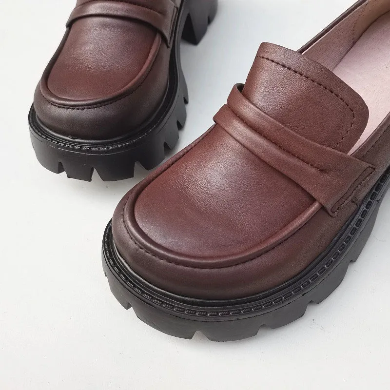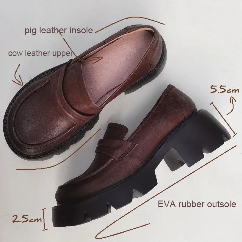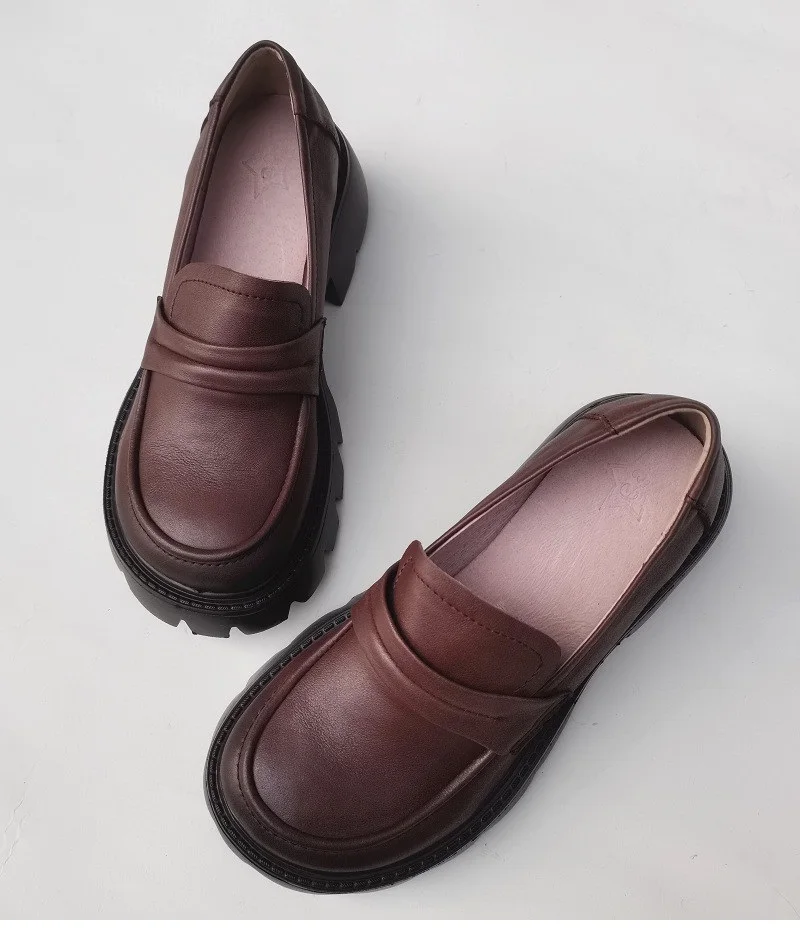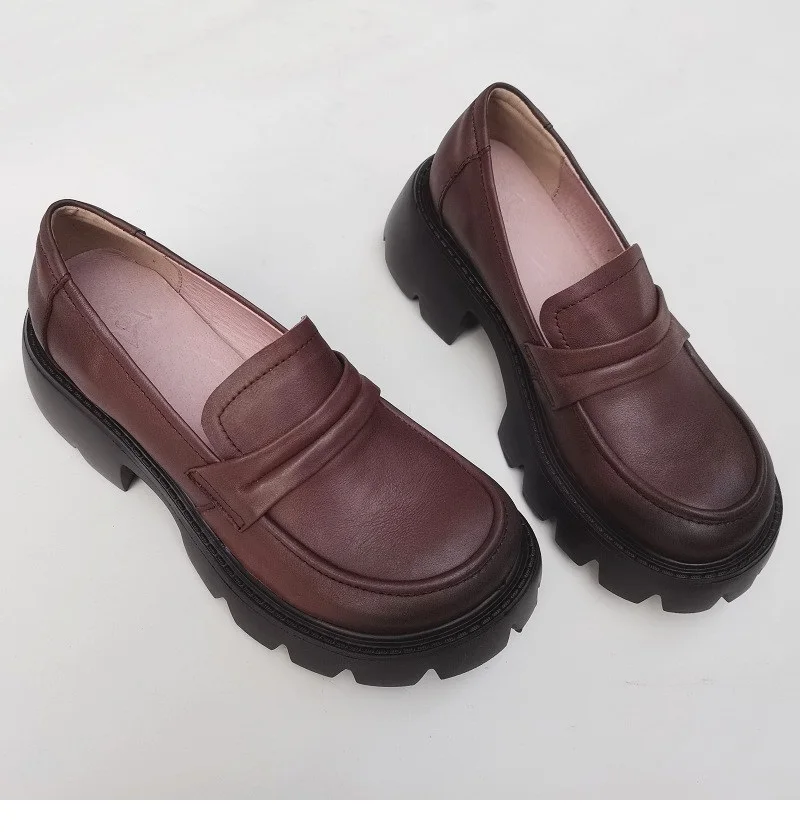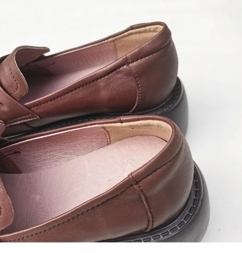 Лоферы женские из натуральной кожи, без застежки, Вулканизированная подошва, плоская подошва, платформа, Весна 2011