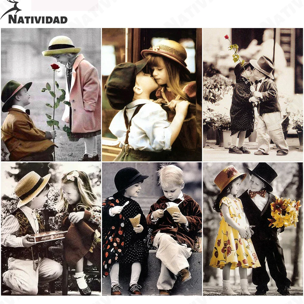 Ретро пара съемки Арт холст картины настенные украшения поцелуй ребенка портретный плакат Гостиная дома эстетическое украшение