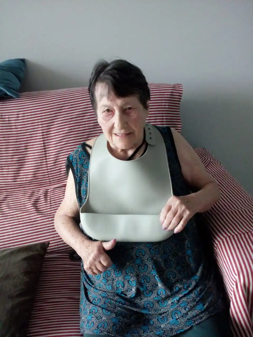 Нагрудник отлично подходит для взрослого человека, хотя когда только получила посылку на ней было написано, что он детский, но нет, это взрослый размер. Сделан из мягкого силикона. Покупала для бабушки знакомых, она ввиду деменции кушает очень неаккуратно.