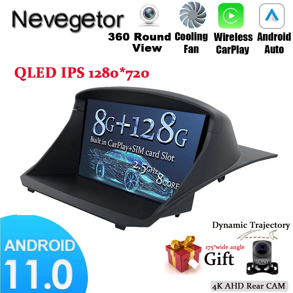 Автомагнитола для Ford Fiesta 2009-2014, Android 11, 2 Din, 9 дюймов, мультимедиа, стерео, Carplay, навигация, GPS, автомобильный DVD-плеер, Bluetooth