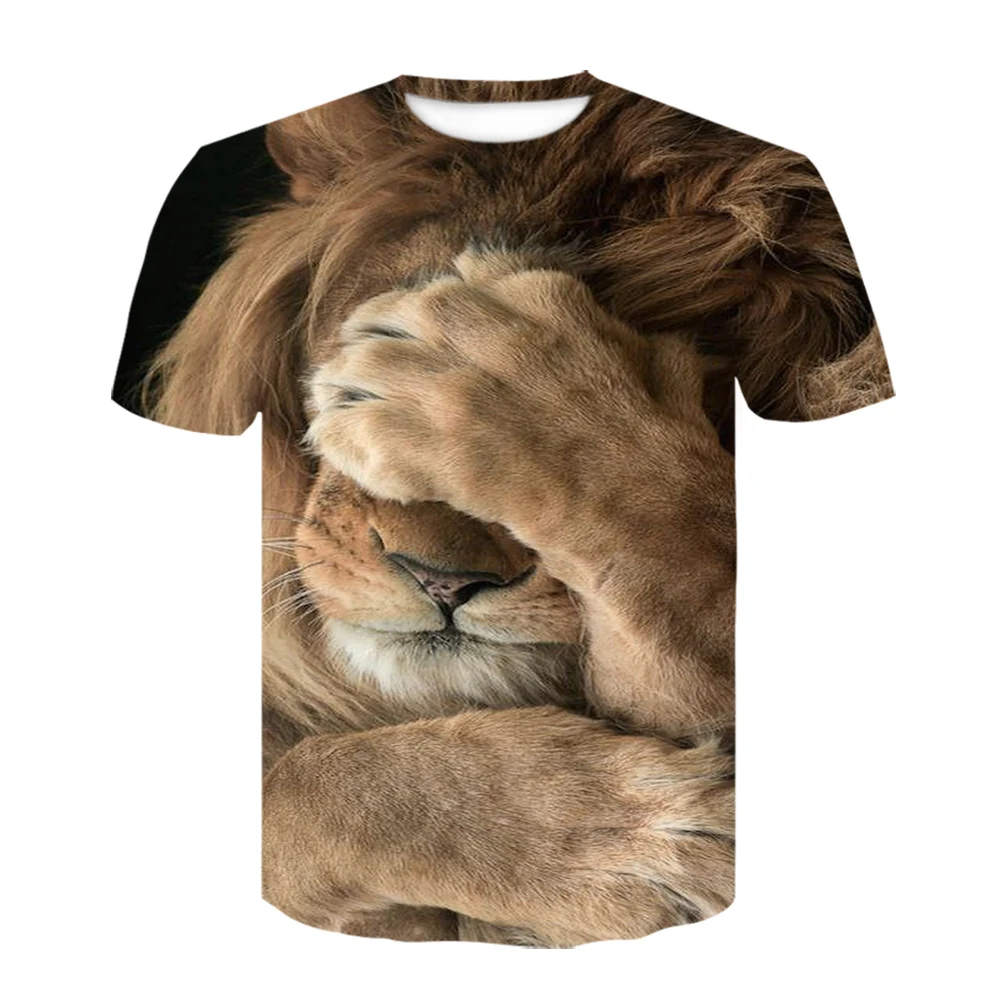 Мужская футболка, Повседневная футболка с 3D-принтом льва, с коротк...