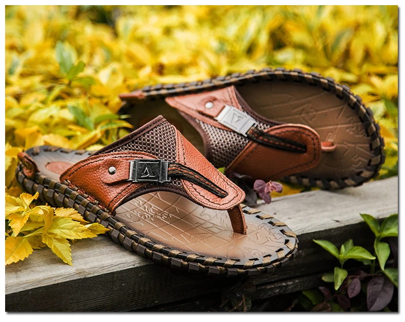 Шлепанцы BIMUDUIYU мужские из натуральной бычьей кожи, пляжные санд...
