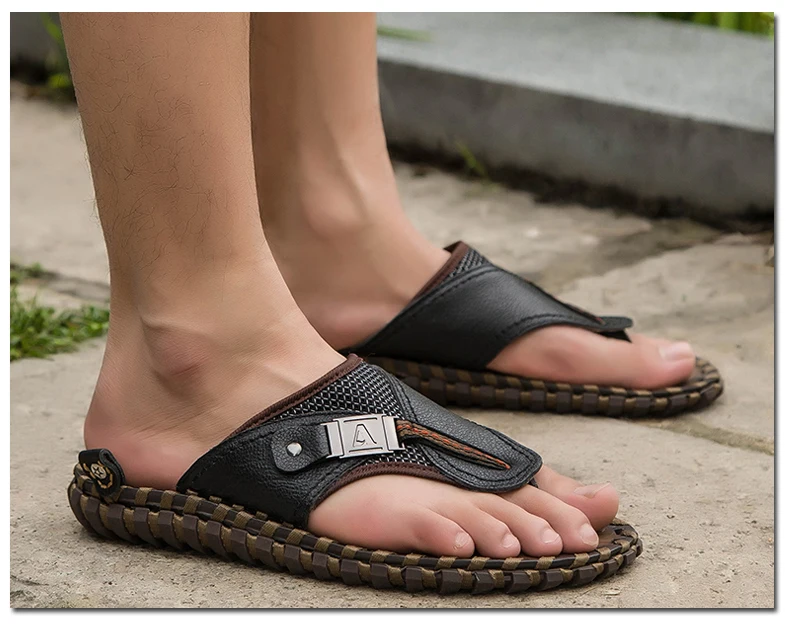 Мужские Пляжные Шлепанцы из натуральной кожи, роскошные сандалии, Повседневная модная обувь, большие размеры 48, на лето