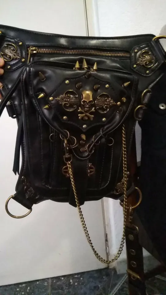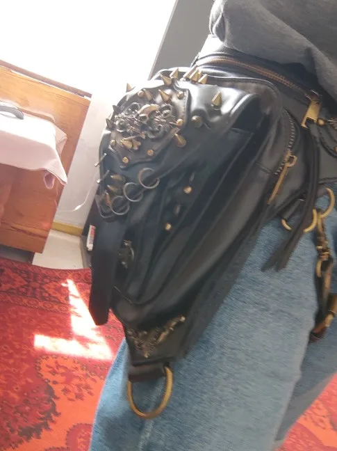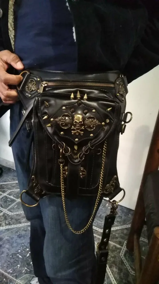Сумка поясная Мужская, кожаная, с заклепками, в стиле стимпанк