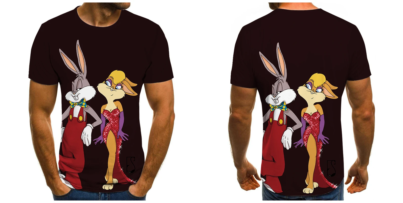 Весенне-летняя Новинка, футболка с 3D принтом аниме кролика, мужская и женская одежда с коротким рукавом и мультяшным рисунком, Топ оверсайз